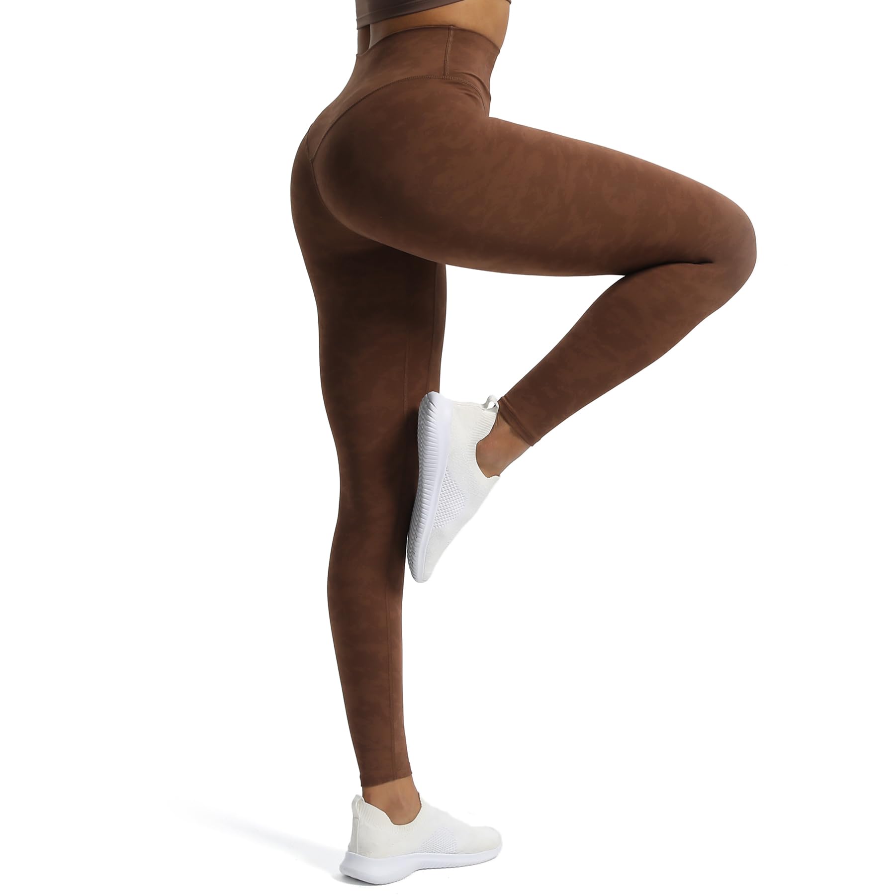 Aoxjox High Waisted Workout Leggings for Women Tummy Control Buttery Soft Yoga Metamorph Deep V Pants 27" (Cloud Brown, Small)