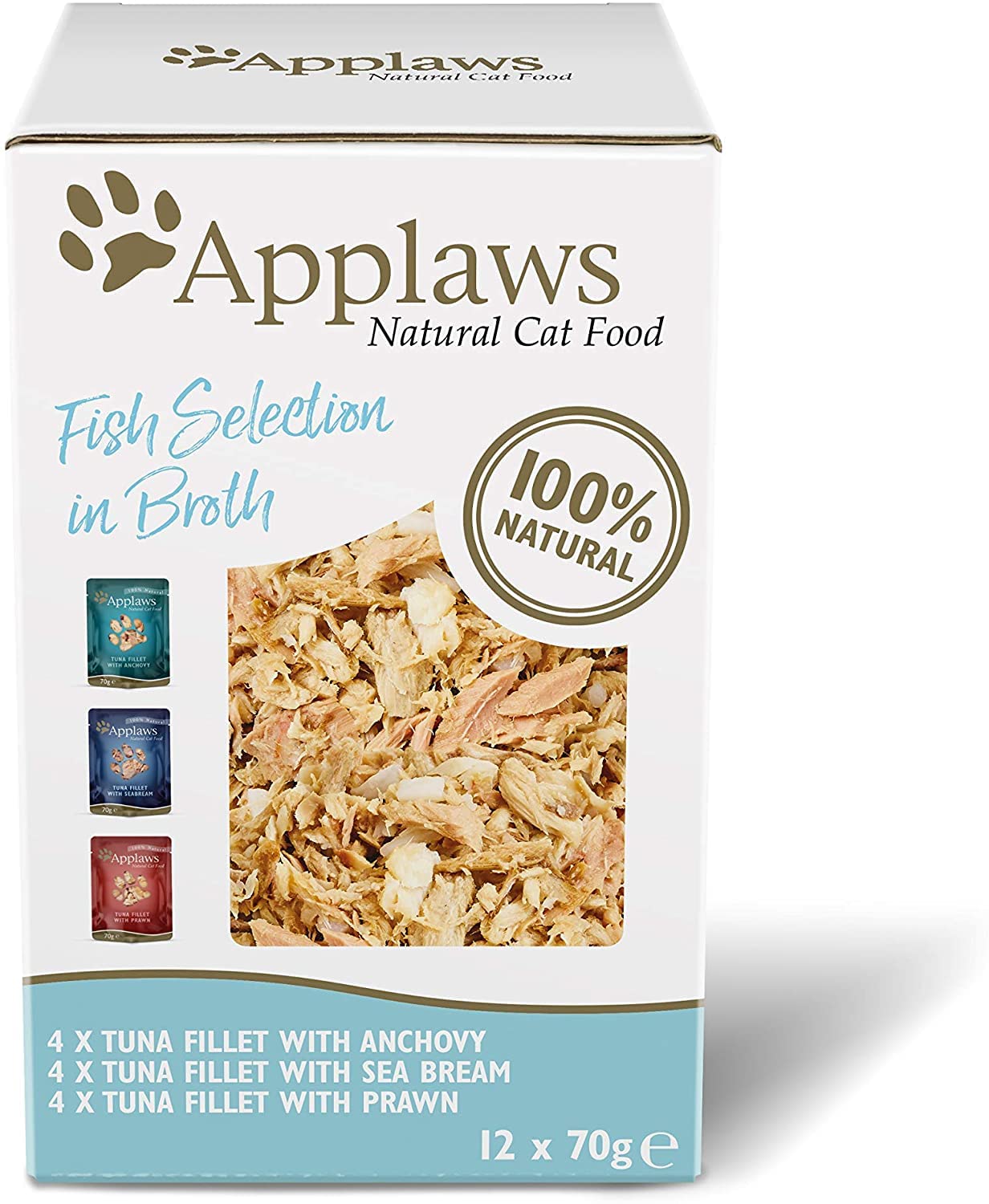 DescriptionProduct DescriptionApplaws Cat Pouch Multipack 12x70g Fish SelectionIngredientsSee product descriptionDirectionsOpen the pouch and serve the food to your cat.