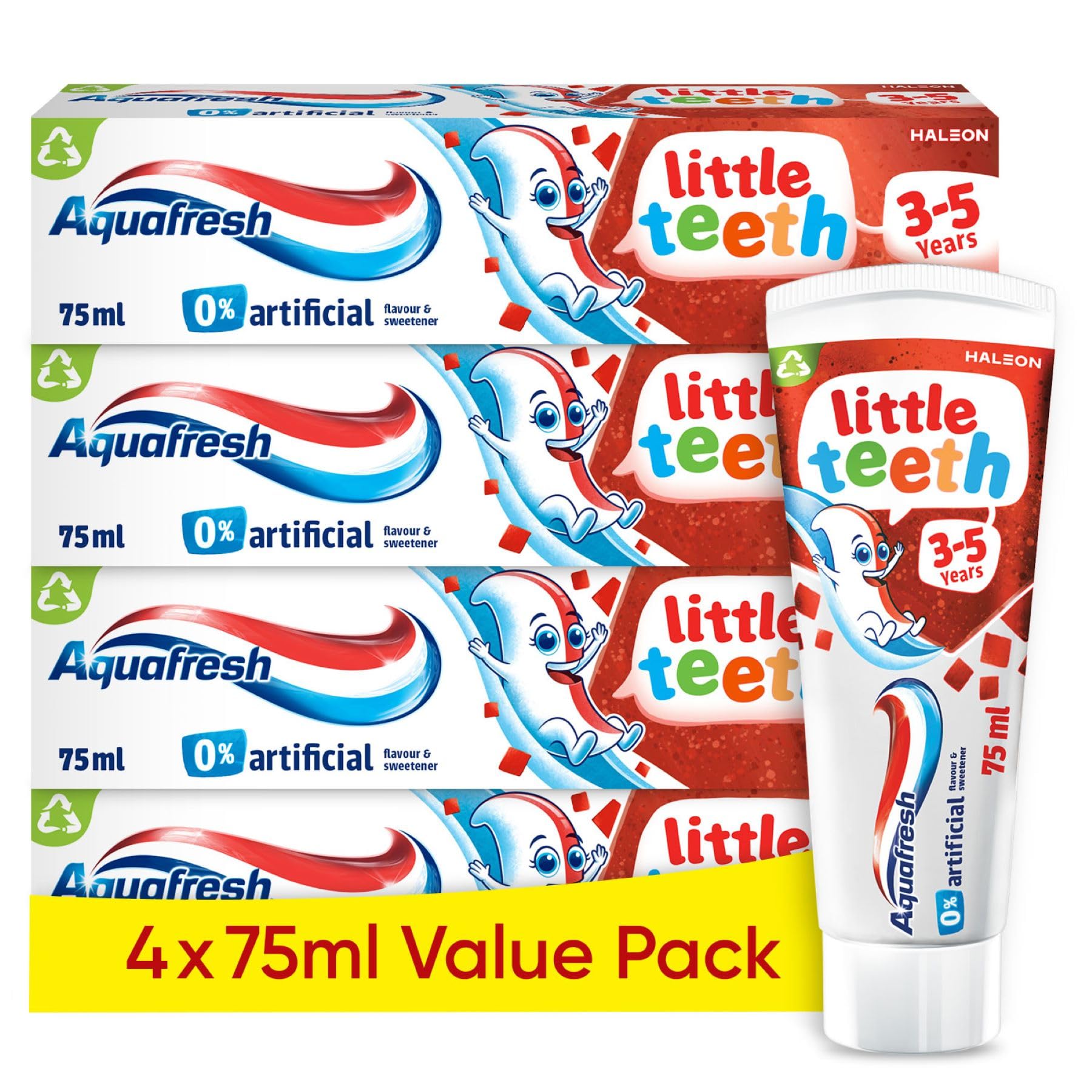 Aquafresh Little Teeth 3-5 Years, Kids Toothpaste, Gently Strengthens and Protects Little Teeth, Multipack 4 x 75ml