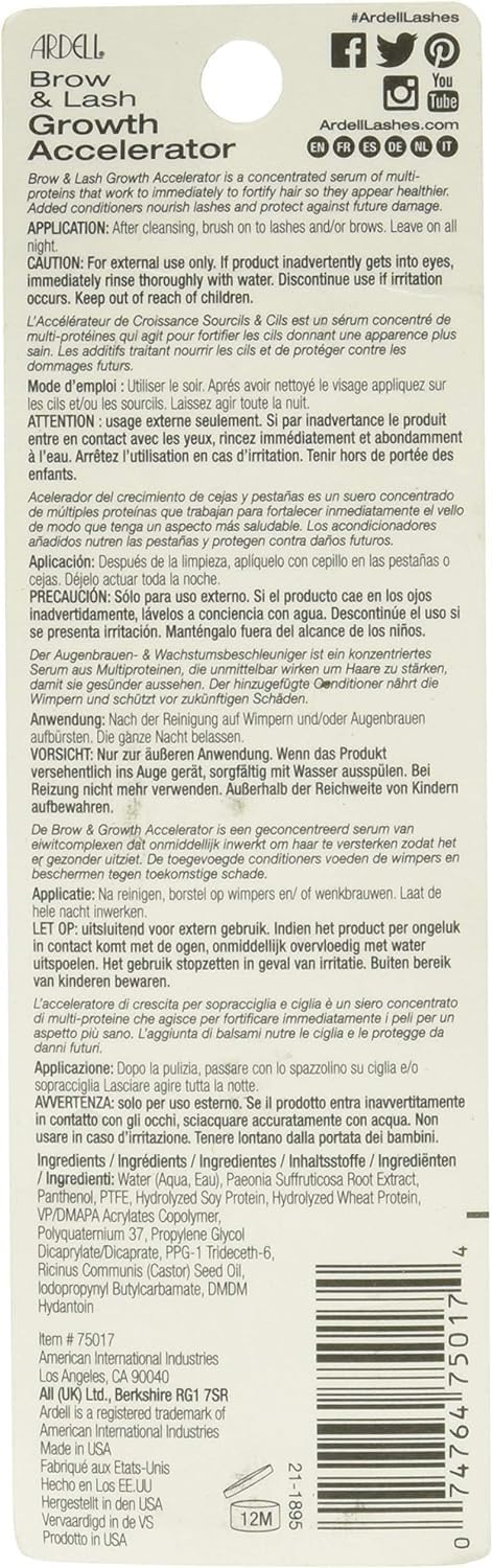 Ardell Brow & Lash Accelerator treatment gel (0.25 fl oz, 7.3 Ml) is a concentrated serum of multi-proteins that works to immediately repair weak lashes and restore thickness of over-tweezed or thinning brows.