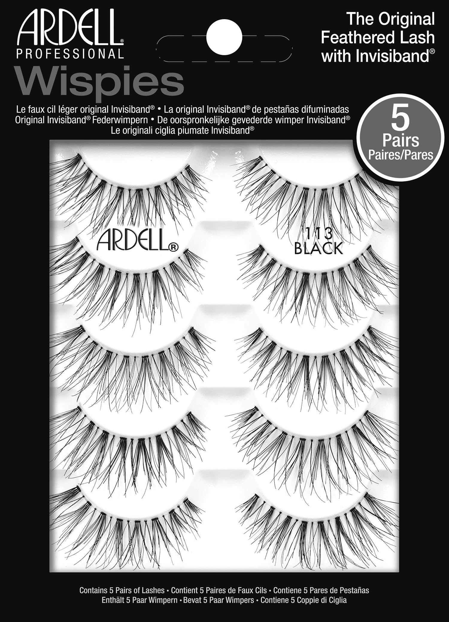 Ardell Wispies 113 Fluttery, Graduated Mixed Length, Black, 5 Pairs x 1 Pk