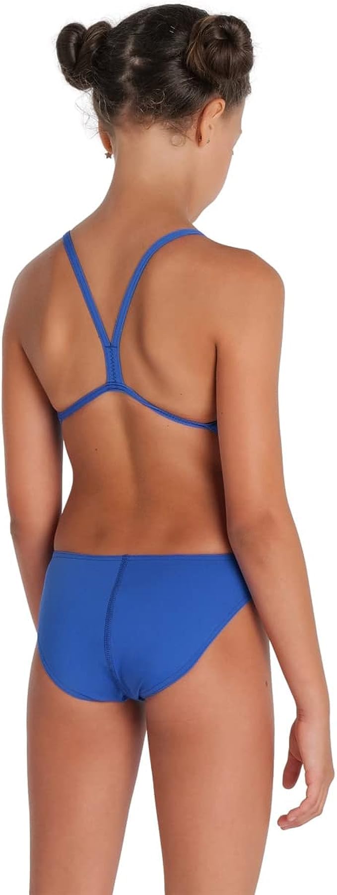 The Arena Girl's Team Challenge Back Solid Swimsuit is a great choice for club or fitness swimmers that require a durable swimsuit for training sessions. A Challenge Back has thin shoulder straps with a wide back opening, giving you maximum freedom of shoulder movement an excellent feel of water and reduced drag. With non-restrictive straps, make it perfect for all training drills, its high leg cut provides style and comfort for you during your long hours in the pool. This swimsuit is made with Arena's MaxLife, 100% polyester fabric. This material is an exclusive from Arena MaxLife Eco which is the evolution of arena’s premium fabric for regular and swimmers, delivering maximum resistance to chlorinated water. While maintaining the same benefits as the standard fibres used in the original MaxLife, the new ecological version features more than 50% recycled polyester. The recycled polyester is obtained from PET Bottles and produced adopting a circular economy approach that helps save energy, reduce CO2 emissions and minimize water usage during the process. Its construction is based on specifically engineered PE yarns, providing elasticity and combining an exceptional fit with power retention performance. Additional features include its quick drying properties and 50+ UV protection, this is the perfect suit for the intensive swimmer! Key Features: Quick Drying 50+ UV Protection Challenge Back Design Medium Cut Leg Front Lining from size 10-11 to 14-15 Thin and wide straps with a wide back opening Material: MaxLife Eco, 100% Polyester Fabric Colours Red (Red/White) Purple (Plum/White) Navy Blue (Navy/White) Black (Black/White) Red Yellow (Freak/Soft Green) Blue (Royal/White)