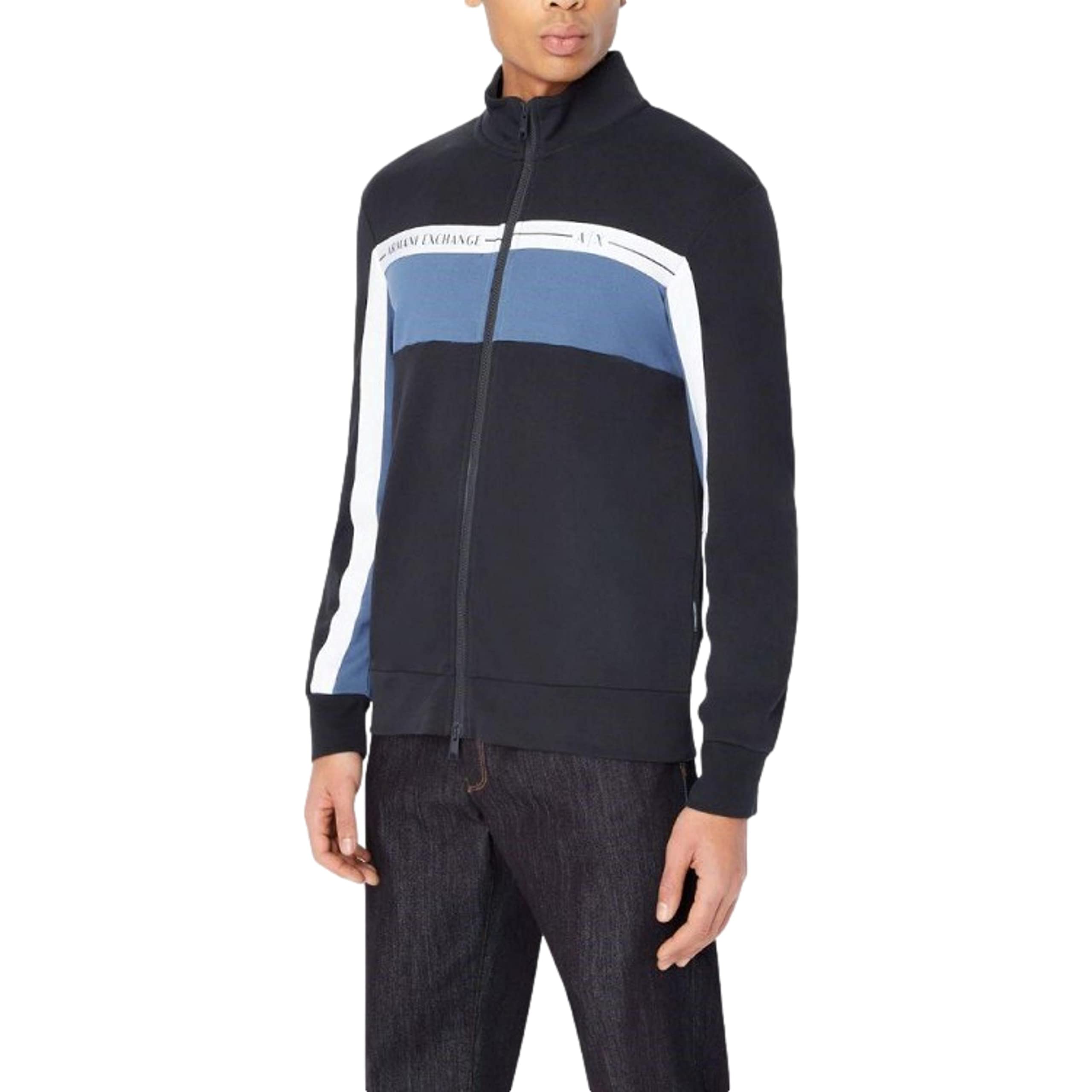DescriptionThis sustainably made, organic cotton sweatshirt features a tri-color striped design on the both front and back sides. With the A|X Armani Exchange logo subtlely printed on the chest, this piece is an elevated classic zip-up implementing style and maximizing comfort.