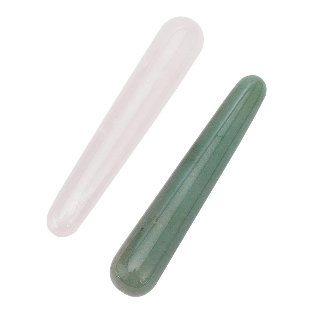 arricraft 2 Pcs Crystal Massage Wands, Natural Rose Quartz/Green Aventurine Wands Crystal Massage Sticks Gua Sha Massager Stone for Face, Eyes, Full Body Relaxation