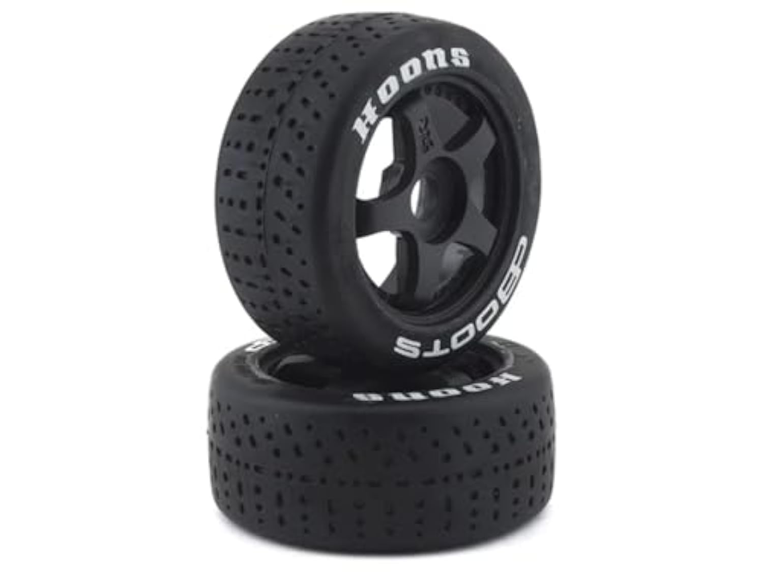 ARRMA boots hooks 42/100 2.9 belted RC tires with foam inserts, mounted on 5-Spoke Black wheels (set of 2): Ara55062