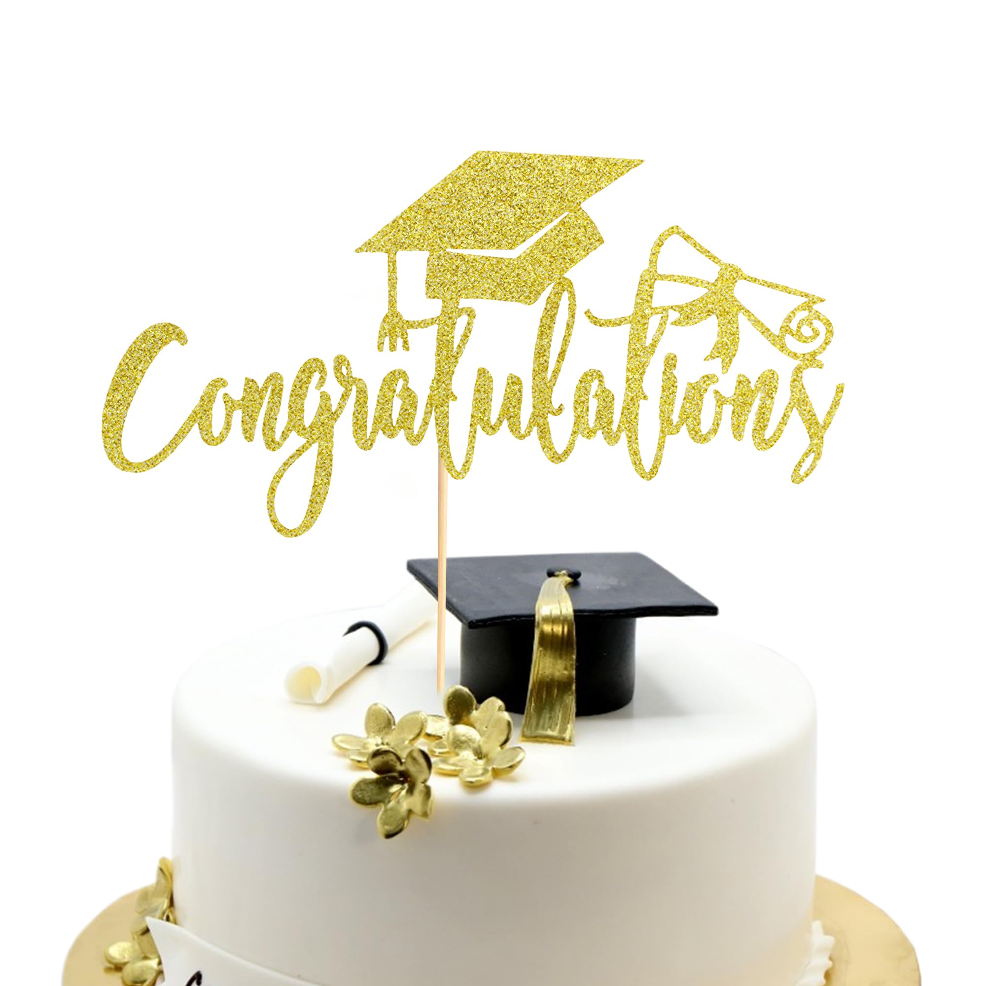 Arthsdite 1Pc Congratulations 2024 Graduation Cake Topper, Congrats Grad Cake Decor - 2024 High School/College/Senior Graduation Party Decorations Supplies - Gold Glitter