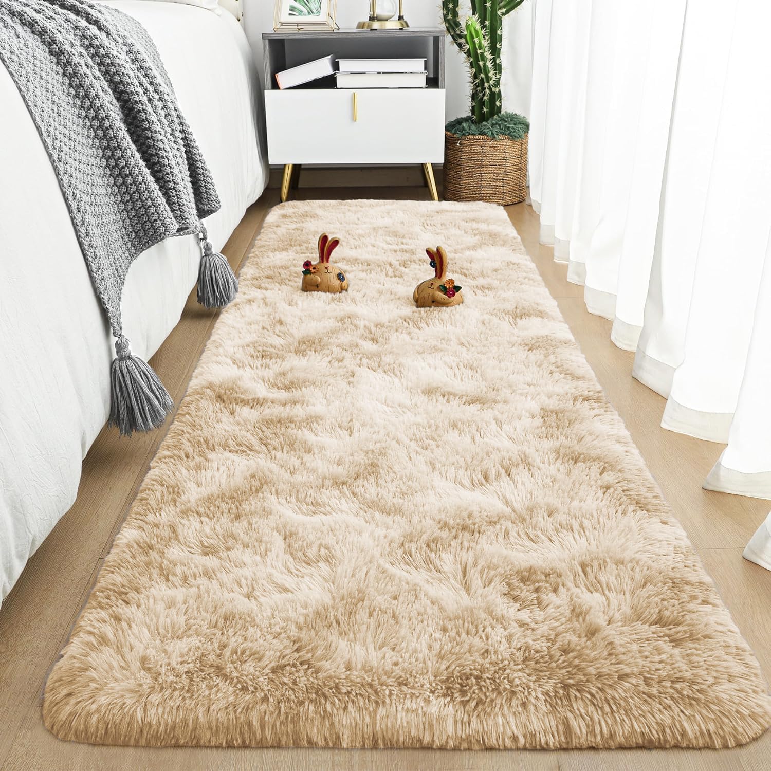 Aspire Homeware Rugs Living Room - Tie-Dye Cream Area Rugs for Bedroom, Hallway Runner Rug Anti Slip 60 x 220 cm - Modern Super Soft Plush Floor Carpets - Fluffy Shaggy Bedside Rug for Kids Room