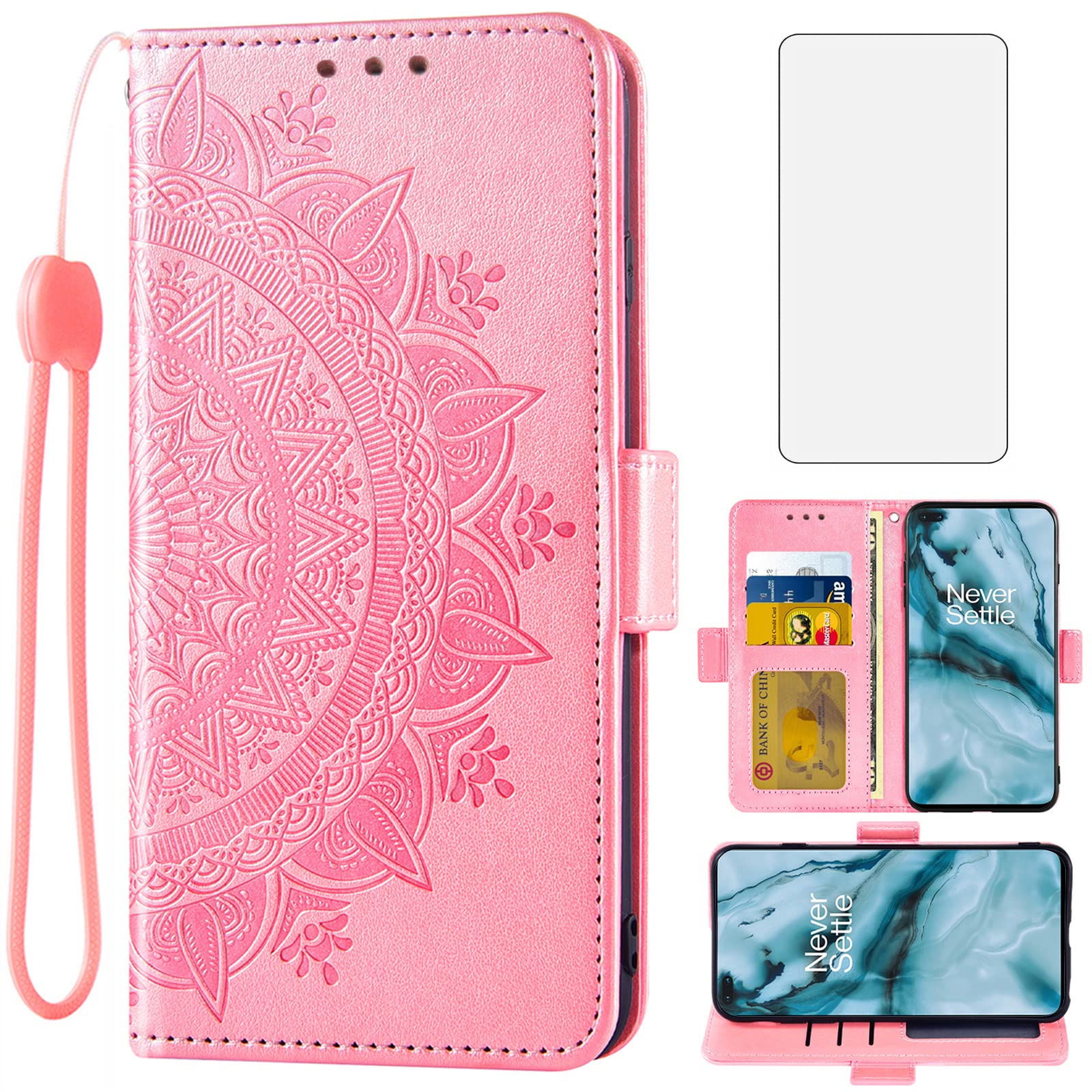 Asuwish Compatible with OnePlus Nord Wallet Case Tempered Glass Screen Protector Credit Card Holder Flip Wrist Strap Stand Cell Phone Cover for One Plus On 1 Plus 1plus One+ 1+ 1+Nord Rose Gold