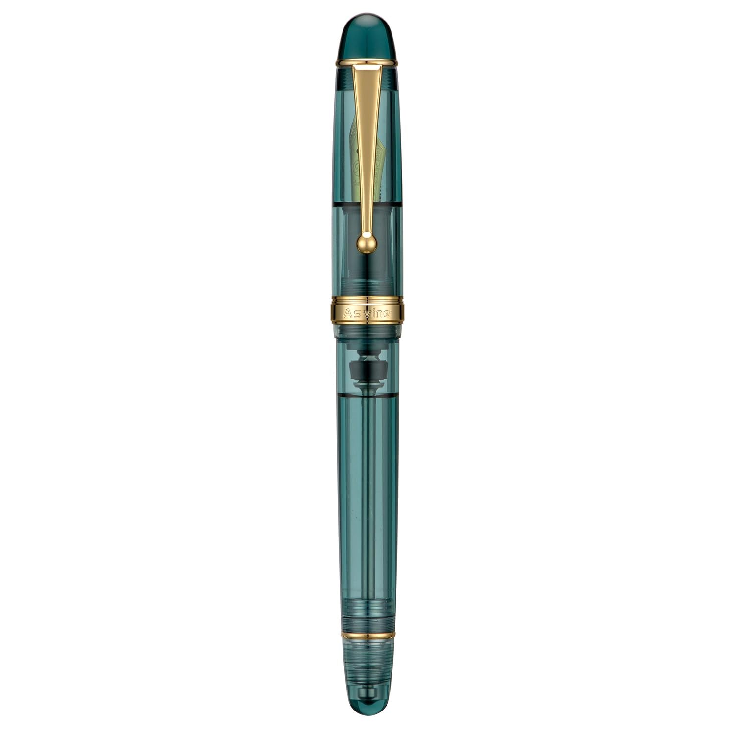 Asvine V126 Vacuum Filling Fountain Pen Transparent Teal Acrylic, Medium Nib Large-Capacity with Gift Case