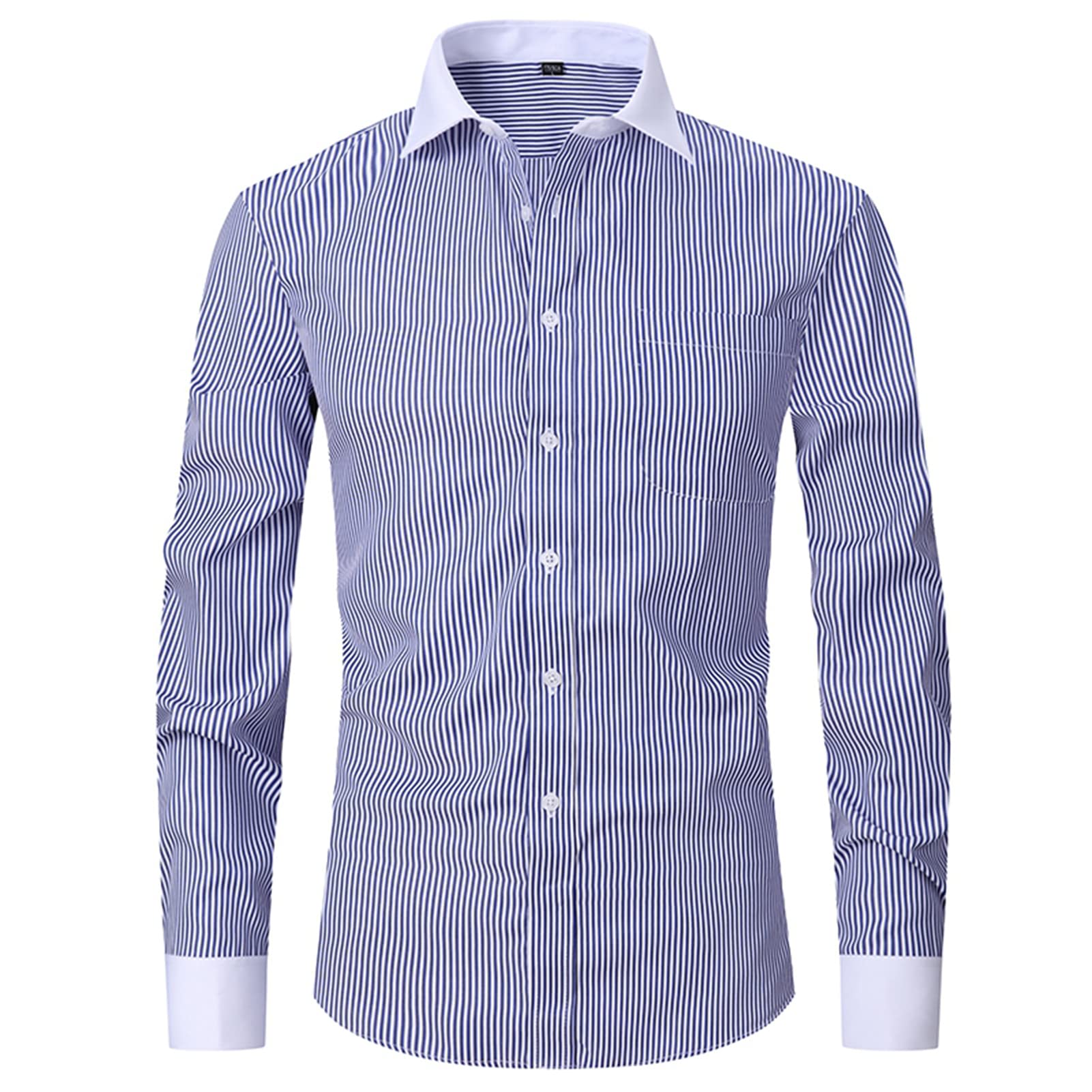 ATOFY Men's French Cuff Dress Shirt Slim Fit Formal Business Button Down Shirt for Men Long Sleeve, Stripes-blue, XL