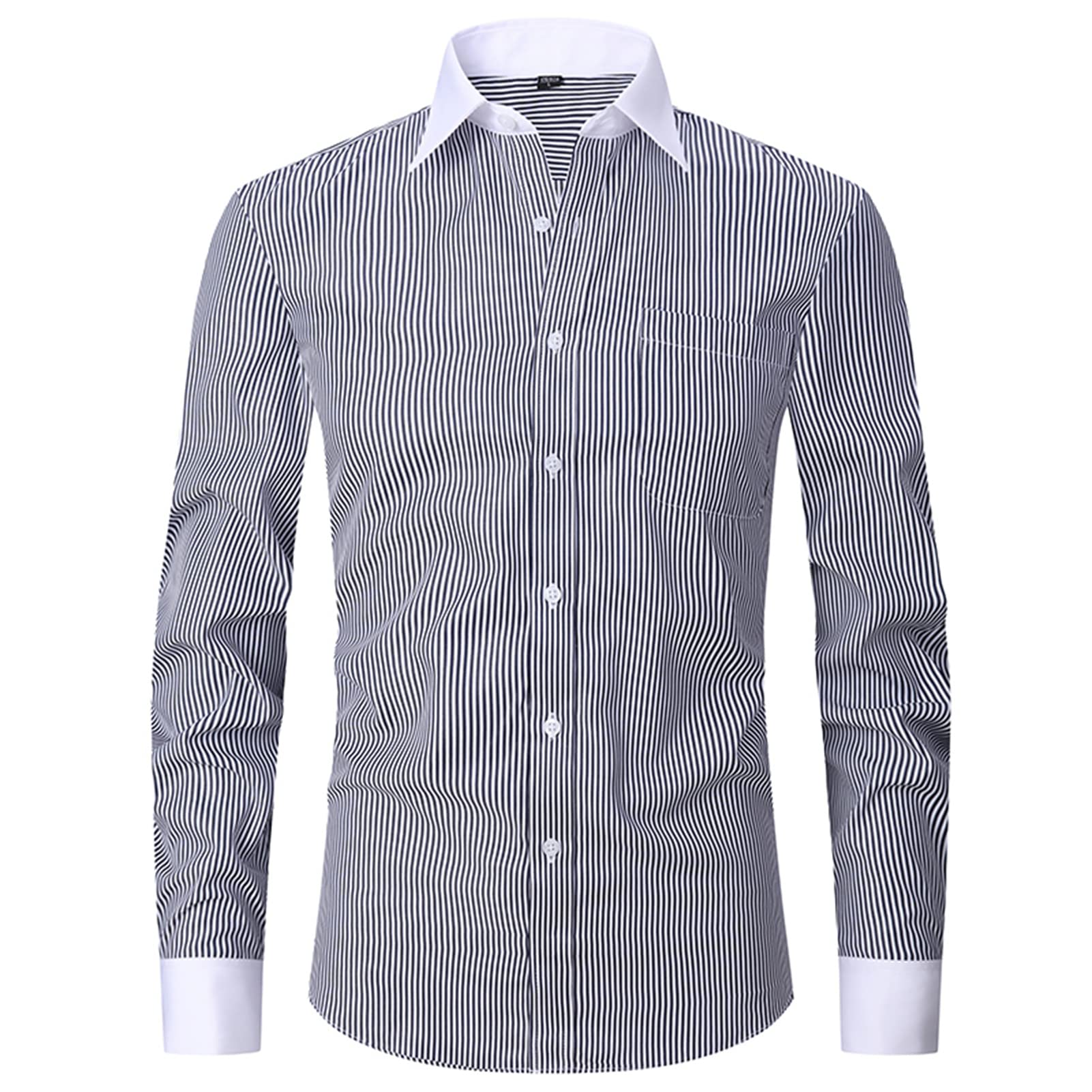 ATOFY Men's French Cuff Dress Shirt Slim Fit Formal Business Button Down Shirt for Men Random Cufflinks Stripes Patterned(Black, S)