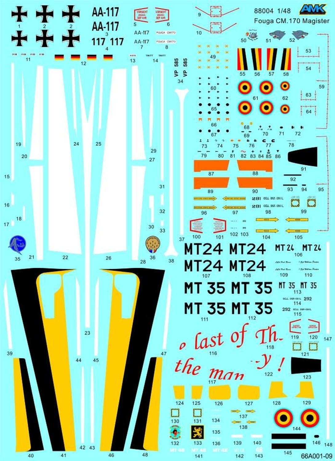 The Fouga CM.170 Magister is a 1950s French two-seat jet trainer. This is a 1/48 scale unassembled model kit. Assembly and painting required.