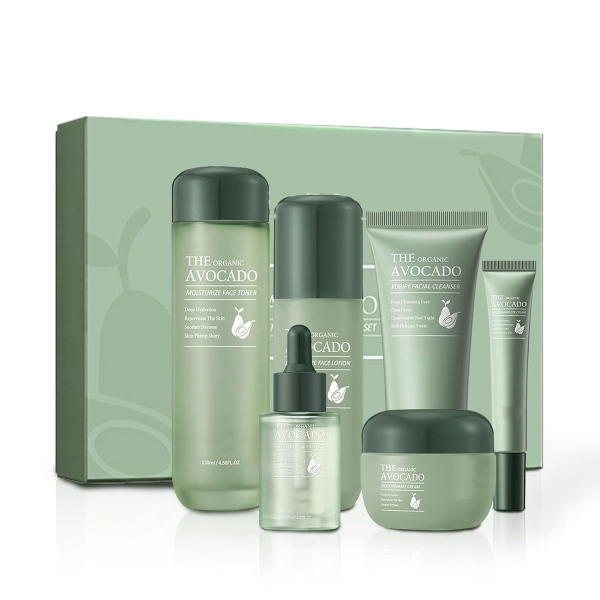 Avocado Skincare Set, 6-In-1 Skincare Gift Set With Facial Cleanser, Facial cleanser, toner, lotion, eye cream, essence, face cream, Anti-Aging Skin Care For Women, Birthday Gifts Set For Teen Girls