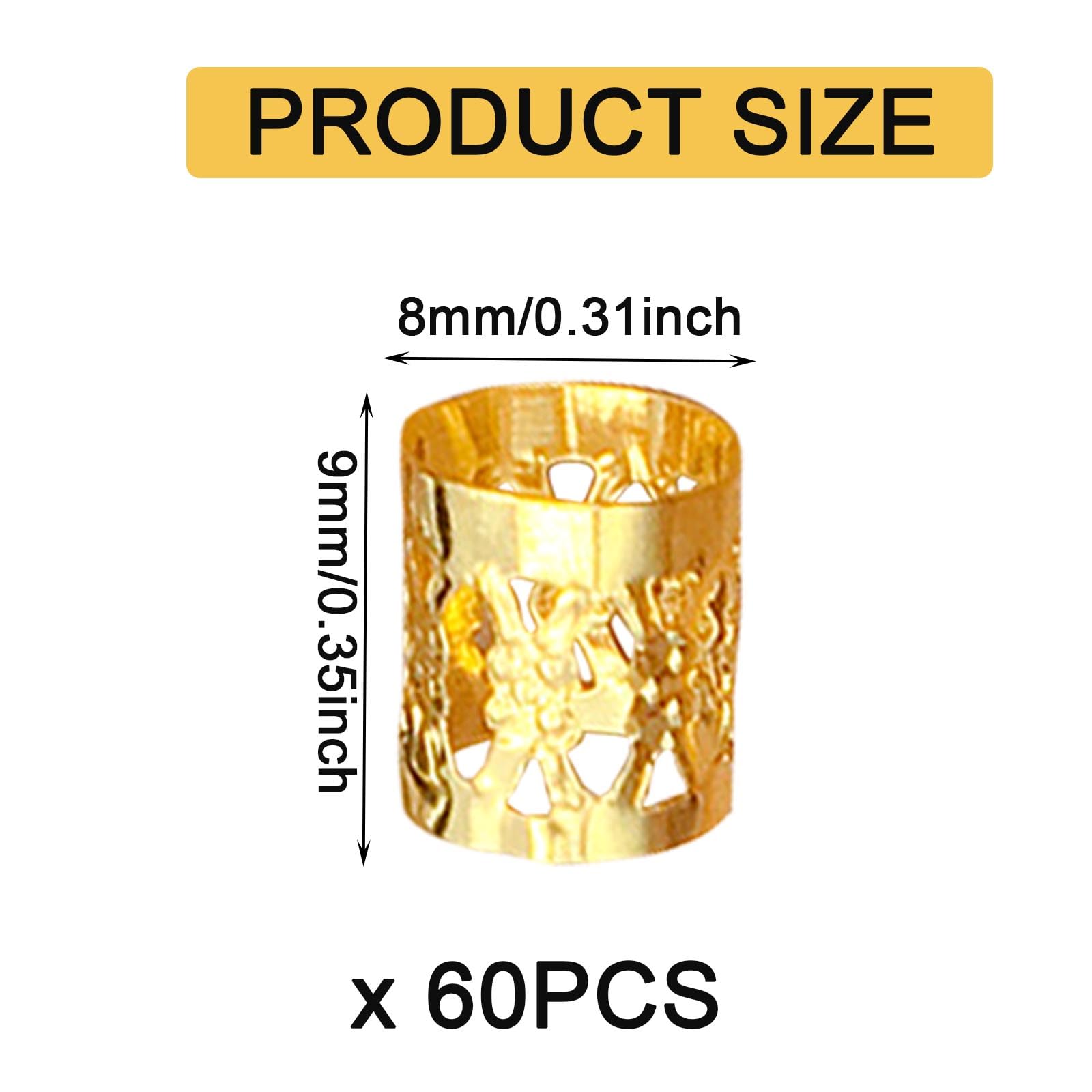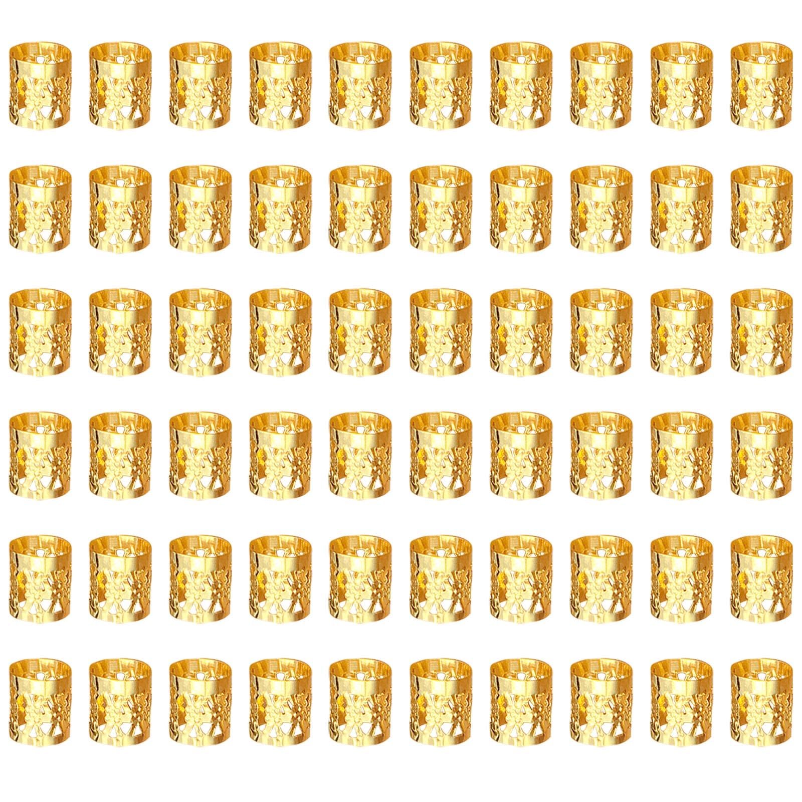 AWAVM 60PCS Wig Accessories, Dirty Braid Hair Extension Ring, Hollow Braid Decorative Ring Buckle, Hair Accessories (Gold)