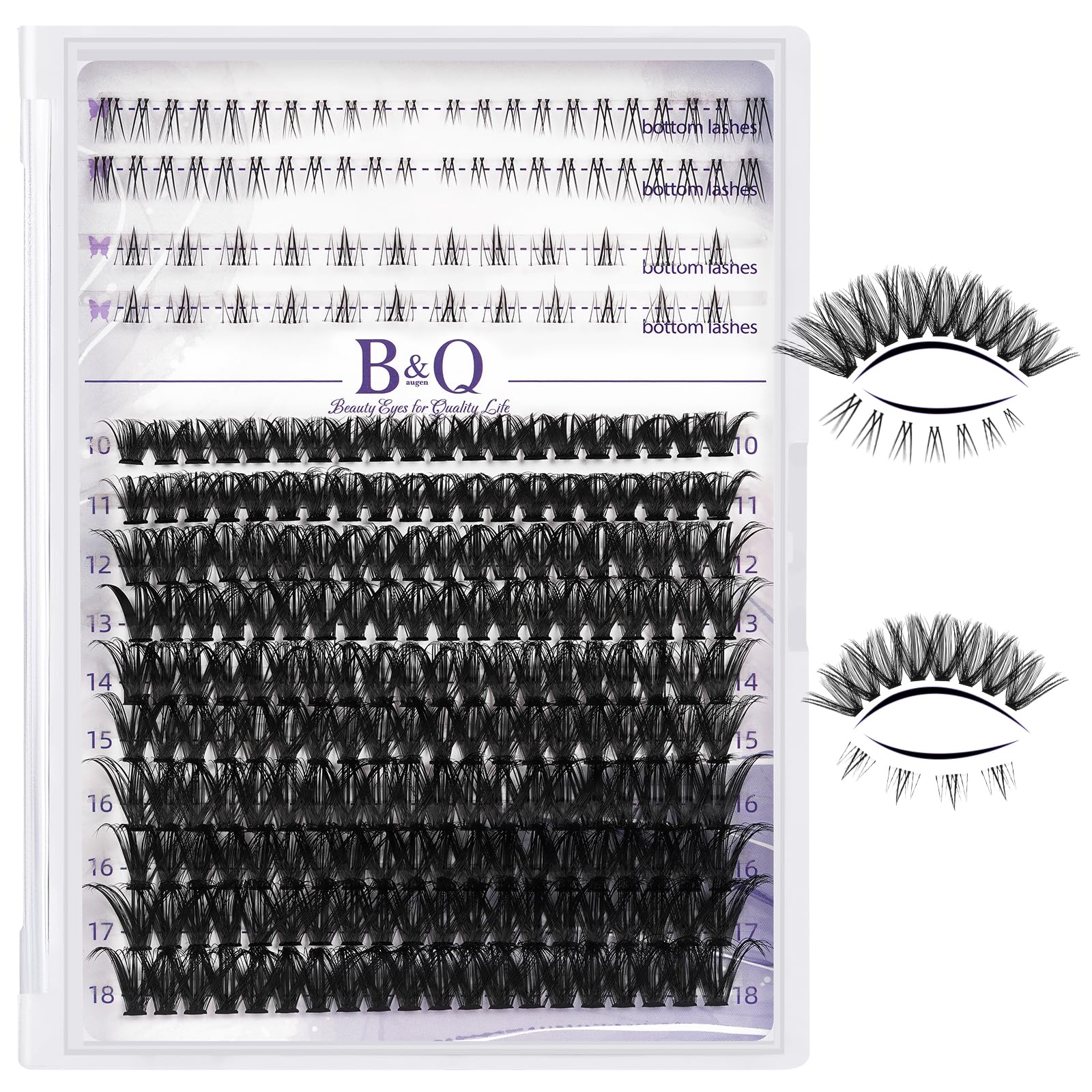 We offered mixed upper cluster lashes and bottom lashes cluster in one wispy lash clusters tray. There are 30D/40D/50D b and q lash clusters. These natural lash clusters give you a volume effect. And there are 2 different under eye lashes in the b & q lash clusters box. The 1 style lower lash is tiny and the lashes are just right as an accent - natural and not overdone. The other style bottom eyelashes is full of personality and give people a special feeling. You can apply multiple layers of lash clusters d curl as your upper lashes. And use 4-6 clusters mono-style bottom lashes to decorate your natural lower lashes. You can also mix 2 different lower lashes to create a novelty eyelash look.