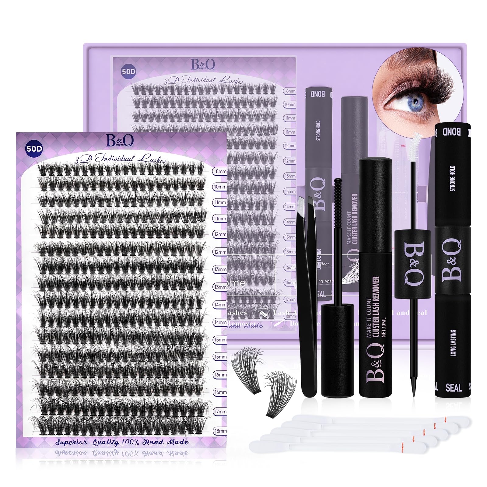 The eye lash extension lash kit includes 320 individual lash clusters, lash bond and seal,lash remover, lash applicator and cotton removal swabs. The eyelashes extension kit mixed 30D and 40D which have luxury layers and looks like more realistic and fluffy. And 3D lash kit for eyelash extensions beginners design gives you a salon effect but DIY at home by yourself. Lash extension kit for beginners offered mixed lengths from 8 to 18mm.