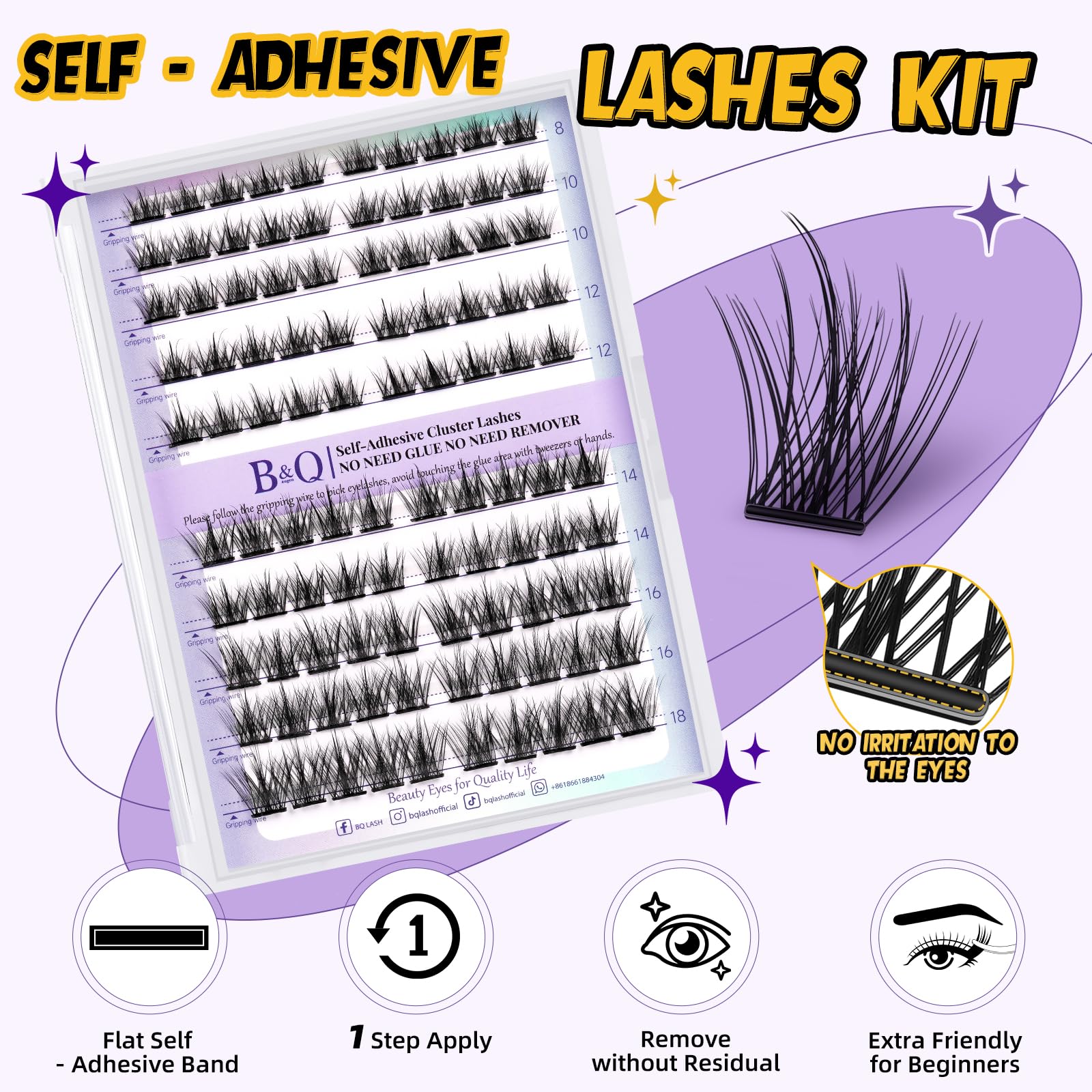 B&Q Self Adhesive Eyelashes Extensions Kit 100 PCS 8-18 Mixed Self Adhesive Lashes No Glue Eyelashes ZC03 Press On Eyelashes Clusters Kit Natural DIY Lash Extension Kit No Glue Lashes(ZC03-D-MIX)