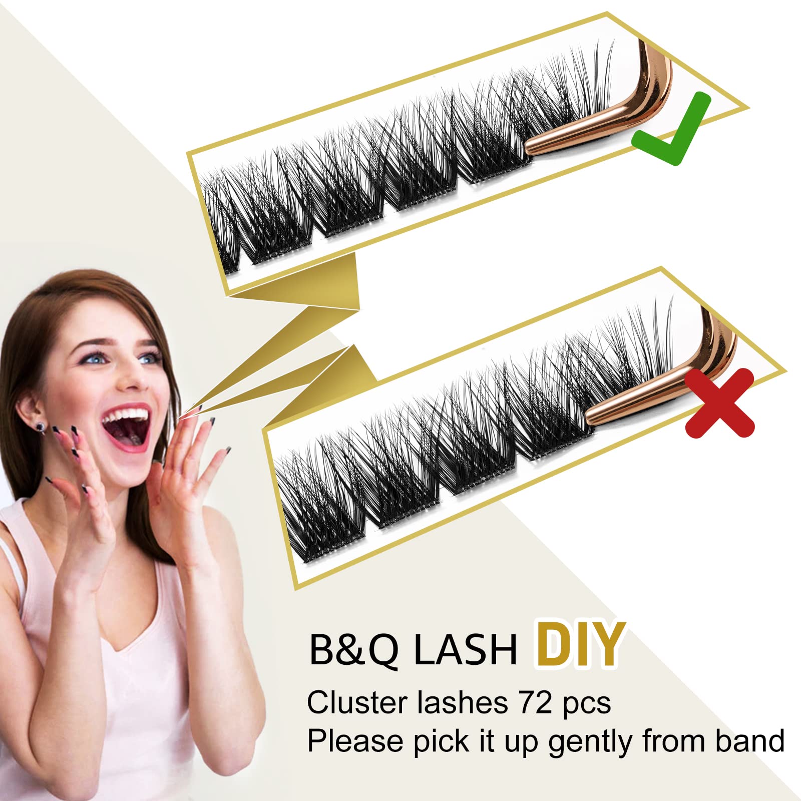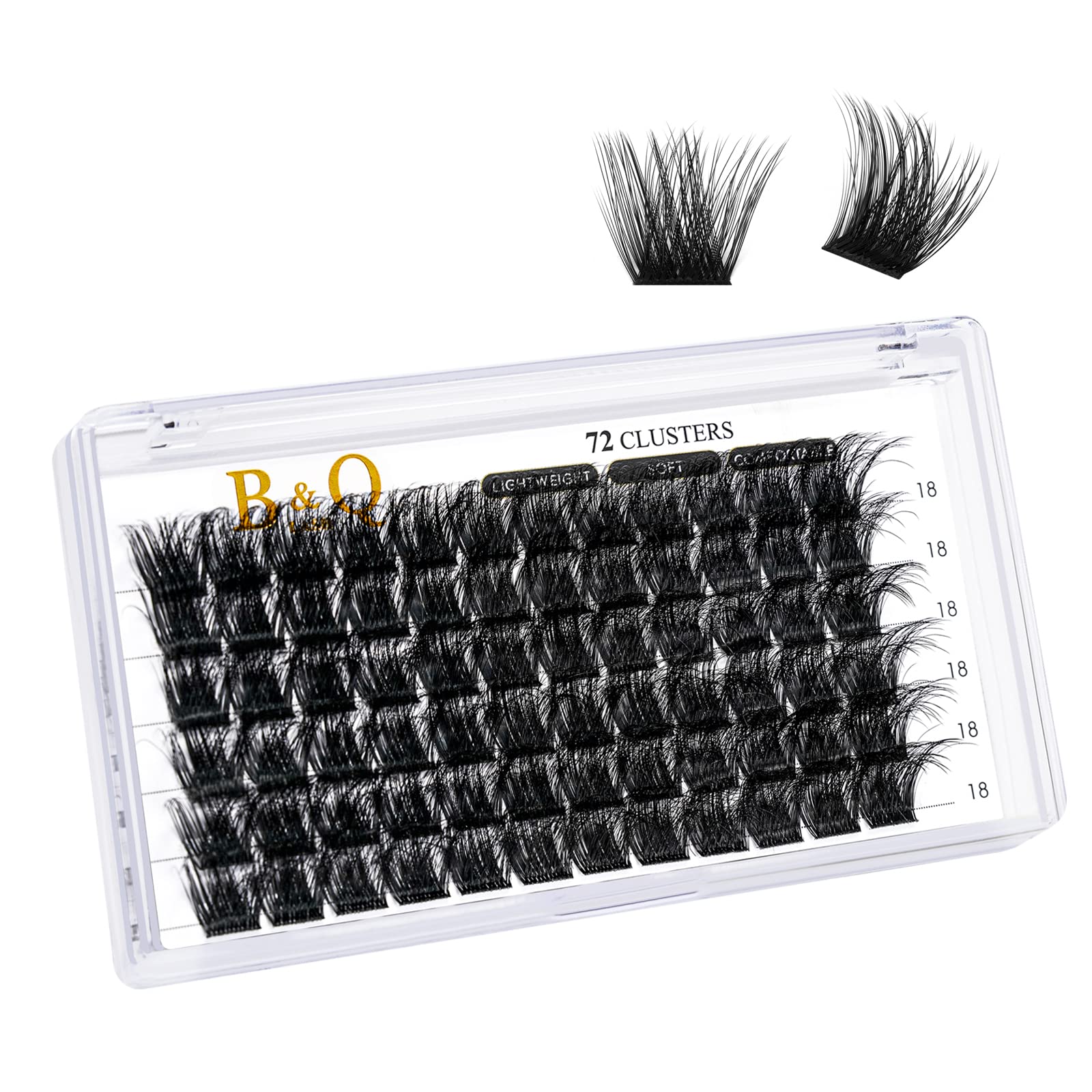 B&Qaugen Lash Clusters, C D Curl, 18mm, 72 Clusters, DIY False Eyelashes, Individual, Vegan, Cruelty Free