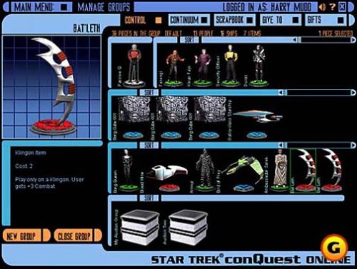 Amazon.comIn Star Trek: ConQuest Online, gamers assume the role of a Q, an all-powerful being who is anxious to reign most clever amongst a bevy of other Qs. By utilizing collectible pieces from Star Trek: The Next Generation, the player manipulates the galaxy, hoping to outwit the competition and emerge victorious.Players start off with a predetermined set of pieces, constructed from a group of more than 150 characters, weapons, and ships, each with varying abilities and value. Players use their pieces to gain control of the planets in their quadrant, as well as to attack and fend off their opponent's pieces. A player wins by seizing control of the challenger's home planet and capturing the Q or by holding off an opponent long enough to rack up the necessary points.ReviewStar Trek collectible games have been around for a while, but Star Trek ConQuest Online is the first designed for the PC, and more importantly, for the Internet. You couldn't ask for an easier way to find opponents, trade pieces, and compete in tourneys than with this online-only game from the creators of the acclaimed online collectible card game, Chron X.There are two ways to get started playing ConQuest Online: by downloading the starter pack, which is under 20MB, or by buying the game at retail. The download is free, and as soon as you pay the $10 registration fee, you can play against a computer opponent or go online and square off against carbon-based life-forms in unranked games. The registration fee is waived for owners of the retail game, and the boxed version comes with a retail-only Ambassador Spock piece (which Activision says will never be available in online booster packs). Even so, the download is considerably cheaper, unless you just don't feel confident starting your first game without that Spock piece.Regardless of how you begin playing, the game automatically sets up five control groups, or decks, each with 41 playing pieces necessary for basic games and ten additional pieces for advanced-game auctions. The five groups fall under five different racial affinities: Federation, Klingon, Borg, Romulan, and mixed. You can create as many new control groups as you like, and once you register, you can start trading pieces with other players. Other benefits of registration include entry in a global ranking system, the option to purchase booster packs and boxes (the box carries a hefty $30 price tag, but it's got a lot of content), and the ability to participate in official tournaments.You play as a Q and use ships, people, and technology from the Star Trek universe to gain control of planets both in the neutral zone (where there can be one or three worlds) and in your opponent's home region. The basic game is divided into three phases: deploy, attack, and move. During the deploy phase, you can place three types of pieces from your control group onto planets, regions, or people. How many pieces you deploy is limited by how many control points you start the turn with, and control points are determined by how many points you spent on the last turn and how many planets you have. Attacking is simple enough - you and your opponent can engage in space combat or in battles on planet surfaces - and during the move phase you can beam people aboard ships and move ships between regions. To win, you either "cheQmate" your opponent by trapping his Q for a full turn on a planet where you have more influence (determined by whom you've placed on the surface) or by controlling the most planets.After you run through the tutorials, you'll find yourself completely comfortable with the principles of the basic game. But once you get into a real match, you'll discover the subtle strategies and deep challenges that ConQuest Online offers. Many of the pieces you deploy can be placed on enemy ships to cripple them - the crippled ship might not be able to beam anyone on board down to a planet, or lose its special abilities such as sensor arrays or isolinear chips. Y