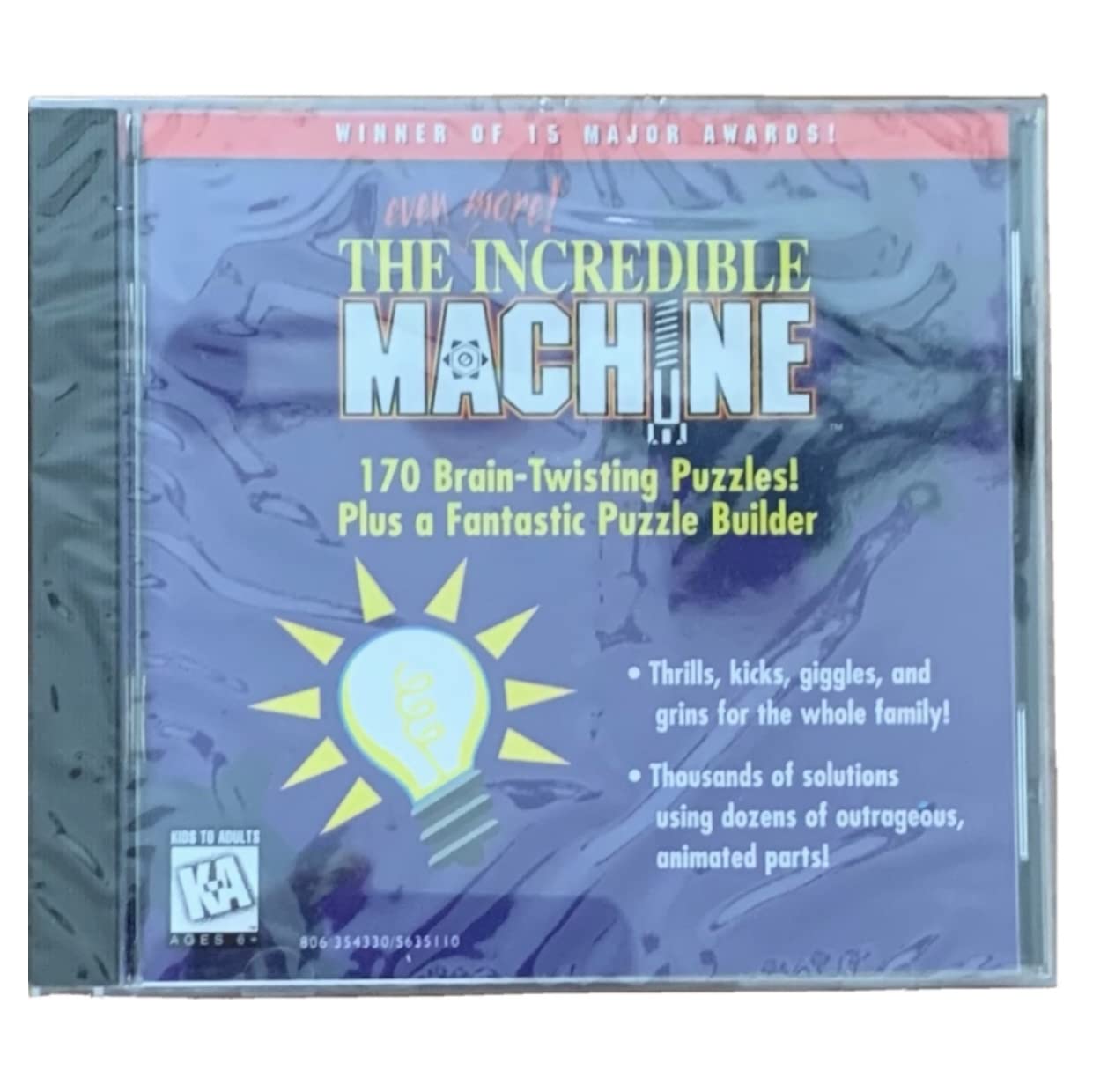 "Solve Up to 60 Animated Puzzles...or Build Your Own!" "It's time to strap on your inventor's helmet, crank up your machine and hang on! Blow up brick walls with bundles of dynamite. Knock bowling balls onto conveyor belts with spring-loaded boxing gloves. Rummage through more than 50 nifty doodads and wacky devices in the parts bin. You get to do about a gazillion strange and cool things as you solve the 160 puzzles. No wonder The Even More Incredible Machine has won 15 major awards, including best Puzzle Game and Best Action/Strategy Game.