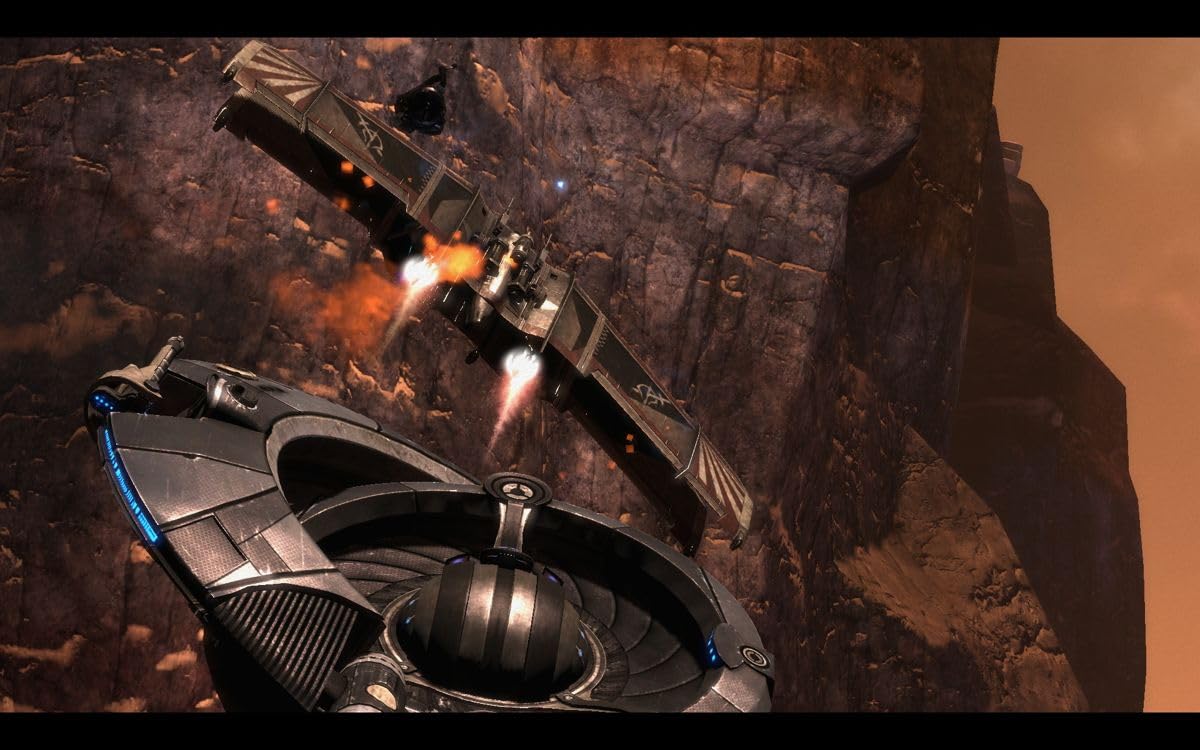 Amazon.comDark Void is a single player sci-fi action-adventure game for the PC that is destined to change the way gamers think about third-person shooter combat. An adrenaline-fuelled blend of aerial and ground-pounding combat mechanics and cover systems headlined by the game's signature in-game items--the hooverpack and jetpack--in it players will experience 3D action like never before as they transition from ground to air combat, and back again whenever they choose. .caption { font-family: Verdana, Helvetica neue, Arial, serif; font-size: 10px; font-weight: bold; font-style: italic; } ul.indent { list-style: inside disc; text-indent: -15px; } table.callout { font-family: verdana; font-size: 11px; line-height: 1. 3em; } td.vgoverview { height: 125px; background: #9DC4D8 url(https://images-na.ssl-images-amazon.com/images/G/01/electronics/detail-page/callout-bg.png) repeat-x; border-left: 1px solid #999999; border-right: 1px solid #999999; padding-left: 20px; padding-right: 20px; padding-bottom: 10px; width: 250px; font-family: verdana; font-size: 12px; }Traditional 3rd-person combat.View larger.And on-command aerial action.View larger.An ancient evil to confront.View larger. StorySet in a parallel universe called "The Void," in Dark Void players take on the role of Will, a down on his luck cargo pilot who crashes in the Bermuda Triangle, and is inexplicably transported to the alien dimension which is the mysterious Void. Here this unlikely hero is caught up in a desperate struggle for survival, joining forces with a rebel human group called The Survivors in their struggle against an ancient and hostile race known as the Watchers who have enslaved the humans of the Void for millenia. Will's main goal is to discover a way to get back to his own dimension, but in that he and the humans of the Void have a common enemy, it eventually seems that he may be destined for a higher calling as well.GameplayAction in Dark Void is a combination of aerial dog fighting and third-person ground combat that brings a thrilling new gameplay dynamic to the third-person shooter experience. Ground combat within the game is more or less standard to action in similar games. The aerial portion, is another thing entirely though, and is facilitated by a hooverpack and even more powerful jetpack with a mounted gun that Will is equipped with. Although there are other weapons in the game, these primary weapons allow players to hurtle through the Void at blistering speeds, shooting down anything that gets in their way. Available at anytime in the game after aquired, they epitomize 3D action by introducing a unique vertical combat system full of possibilities and bringing a whole new sense of tension and thrill to the player. In addition, if they so choose players can use their aerial capabilities to counter attacks leveled at them while on the ground and to deal with spatial issues that they may face throughout the game. But just becasue the hooverpack and jetpack are available at all times, this does not mean that they are always the best option. Through trial and error as well as experience with the devices, player's must determine their best uses for each situation.As a companion to its duel combat style, Dark Void also contains a duel cover mechanic. As with other aspects of the game's ground combat, players can expect convenient standard cover options, including a single button option to snap to cover against walls, etc. Cover options while using the hooverpack and jetpack are understandably more varied though, with players being able to utilize vertical cover options to shoot both up and down.Key Game Features Sci-Fi action/adventure combines aerial and on-foot combat for a totally unique third-person shooter experience. Will’s jetpack delives total freedom of movement allowing players to race against UFOs in high-speed chases and rain death from above onto unsuspecting otherworldly foes. Speed and scale unmatched by any other action title