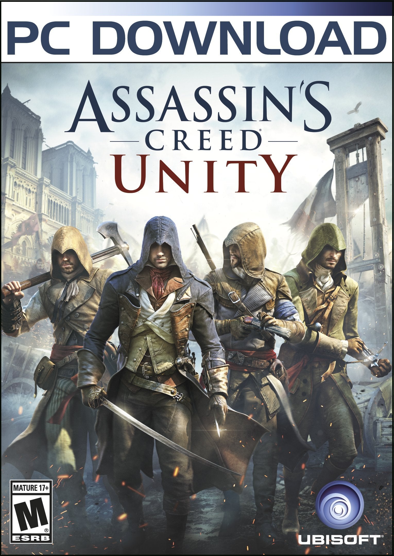 Paris, 1789. The French Revolution turns a once-magnificent city into a place of terror and chaos. Its cobblestone streets run red with the blood of commoners who dared to rise up against the oppressive aristocracy. As the nation tears itself apart, a young man named Arno will embark on an extraordinary journey to expose the true powers behind the Revolution. His pursuit will throw him into the middle of a ruthless struggle for the fate of a nation, and transform him into a true Master Assassin.Introducing Assassin's Creed Unity, the next-gen evolution of the blockbuster franchise powered by an all-new game engine. From the storming of the Bastille to the execution of King Louis XVI, experience the French Revolution as never before, and help the people of France carve an entirely new destiny.Key Features:A UNIQUE CO-OP EXPERIENCE YOU MUST PLAY TO BELIEVEIn addition to an epic single-player campaign, join with up to three friends online and experience the open world of 18th-century Paris. Pull ambitious heists and take part in unique narrative-driven missions designed exclusively for co-op play. Sabotage an execution. Protect an emperor. Assassinate a Templar agent. Victory won't be easy; you and your lethal band must rely on communication, coordination, and diverse skills to accomplish your missions, then vanish into the shadows.A RUTHLESS NEW HERO FOR A BRUTAL WORLDPlay as Arno, an entirely new breed of Assassin, and take down your prey with a range of new weapons such as the Phantom Blade, a hidden blade with crossbow capabilities.BRAND-NEW PARKOUR, COMBAT, AND STEALTH GAMEPLAYEnjoy an unprecedented degree of freedom and control over your Assassin.Full motion control with new parkour mechanics for free running up, across, and down city walls and buildings.A reinvented fighting system provides a richer combat experience based on skill, timing, and flow.Enhanced stealth gameplay, including a new stealth mode, cover system, and crowd-manipulation techniques. Stay hidden, stalk your prey, and strike without warning. DEEP CUSTOMIZATION MECHANICS TO CRAFT YOUR OWN MASTER ASSASSINCraft a unique play style by choosing weapons, gear, outfits, and specialized skills. Mix and match from hundreds of possible combinations and build your stealth, fighting, and navigation abilities from a new, expansive skill tree. Become the ultimate Master Assassin.DISCOVER REVOLUTIONARY PARIS, BROUGHT TO LIFE AS NEVER BEFORECarve through the stunning full-scale open world city, a feat only made possible through the power of an all-new game engine.Explore detailed building interiors and discover secret catacombs and sewers.Embark on ancestral missions, treasure hunts, murder mysteries, contracts, and more. The city is packed full of activities that will captivate for hours.Witness the chaos of the French Revolution firsthand and become immersed in the realistic, systemic crowds of up to 5,000 AI-driven characters. PRE-ORDER NOW AND GET:The Chemical Revolution Mission: Experience an explosive extra mission that involves a genius chemist, a secret formula and a plot for revenge.The Royal Arsenal Pack: includes 2 bonus gear items and 1 bonus weapon.System Requirements: 64-bit operating system required- Supported OS: Windows 7SP1, Windows 8/8.1- Processor: Minimum - Intel Core i5-2500K @3.3 GHz or AMD FX-8350 @4.0 GHz- Recommended: Intel Core i7-3770 @3.4 GHz or AMD FX-8350 @4.0 GHz or better- Ram: Minimum 6 GB, Recommended: 8 GB- Video Card: Minimum - NVIDIA GeForce GTX 680 or AMD Radeon HD 7970 (2 GB VRAM)Recommended: NVIDIA GeForce GTX 780 or AMD Radeon R9 290X (3 GB VRAM)- Sound Card: DirectX 9.0ccompatible sound card with latest drivers-Hard Drive Space: 50 GB available space- Peripherals Supported:Windows compatible keyboard and mouse required, optional controller-Multiplayer: 256 kbps or faster broadband connectionSupported Video Cards at Time of Release: Supported video cards at the time of relea