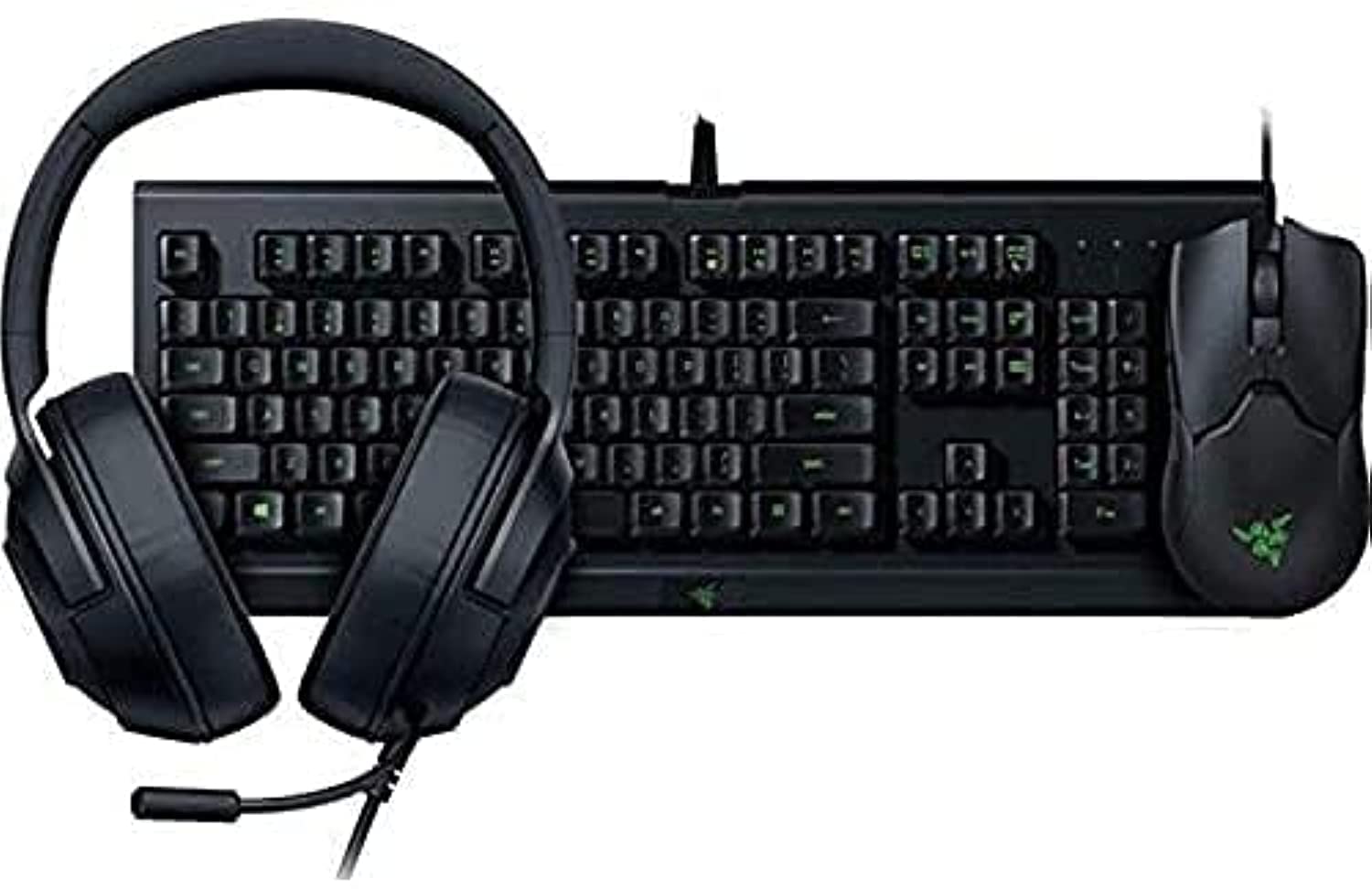 Bundle Contents: 1x Cynosa Lite gaming keyboard, 1x Viper Ambidextrous wired gaming mouse, 1x Kraken X Lite gaming headset. The Razer Cynosa Lite is our entry-level keyboard with gaming grade keys featuring a Razer Choma single zone lighting with full Synapse 3 features, and a spill resistant durable design. With 99.4% resolution accuracy, Razer Optical Mouse Switches, and an ultra-light design, the Razer Viper arms you with the precision and response you need to compete with absolute control. The ultra-light Razer Kraken X Lite is the essential gaming headset built with superior comfort, extended durability and crystal-clear sound. Cynosa Lite Gaming Keyboard - Soft cushioned gaming-grade keys - Single zone Razer Chroma backlighting with 16.8 million customizable color options - Razer Synapse 3 enabled - 10 key rollover - Spill-resistant durable design - Fully programmable keys with on-the-fly macro recording - Gaming mode option - 1000Hz Ultrapolling Viper Gaming Mouse - Razer optical mouse switches - Onboard DPI storage - Razer speedflex cable - 5G optical design - Eight programmable buttons - Ambidextrous design - Compatible with most Window and Mac computers Kraken X Lite Gaming Headset - Built-in adjustable cardioid noise-cancelling microphone - 40mm driver - Headset controls - Ultra-lightweight frame