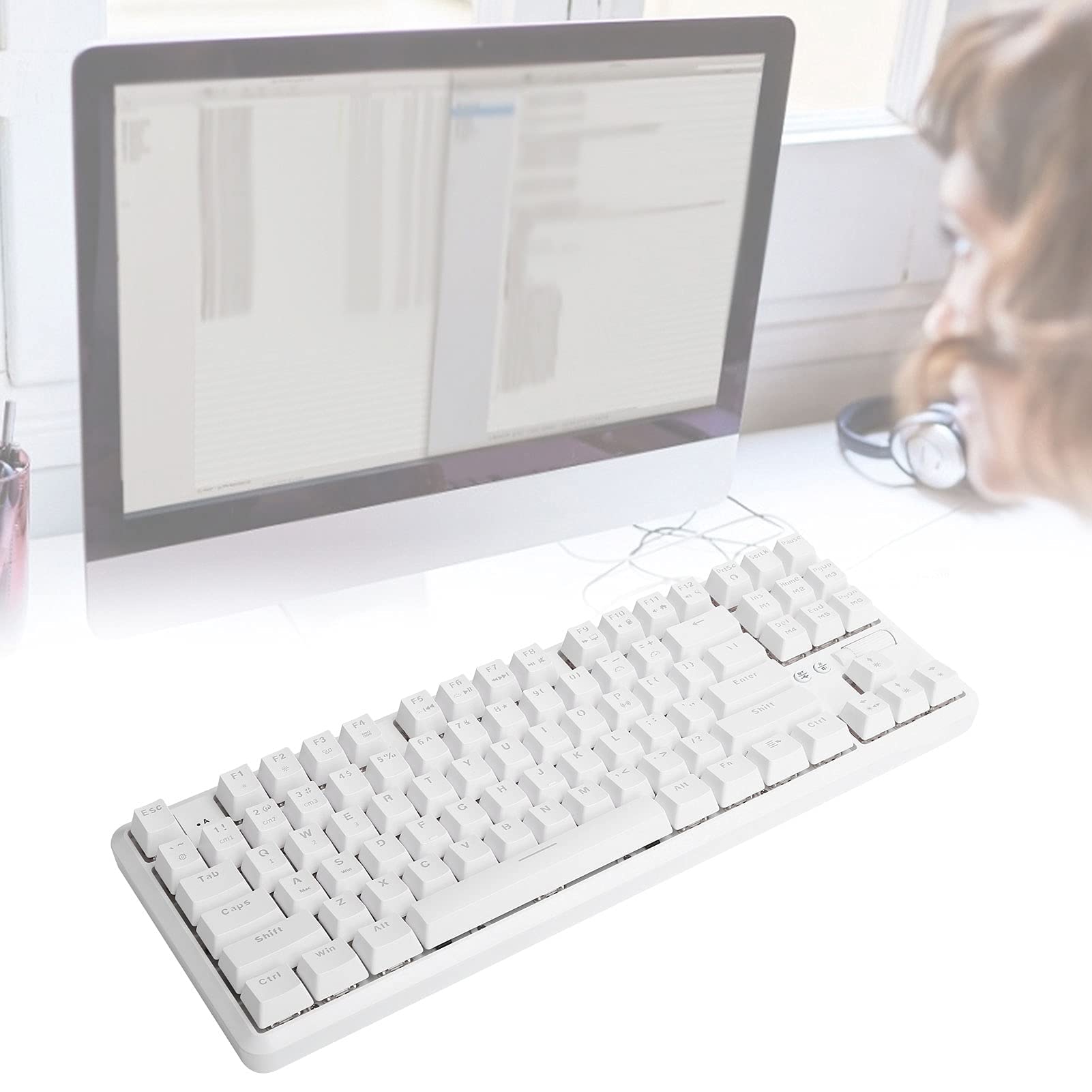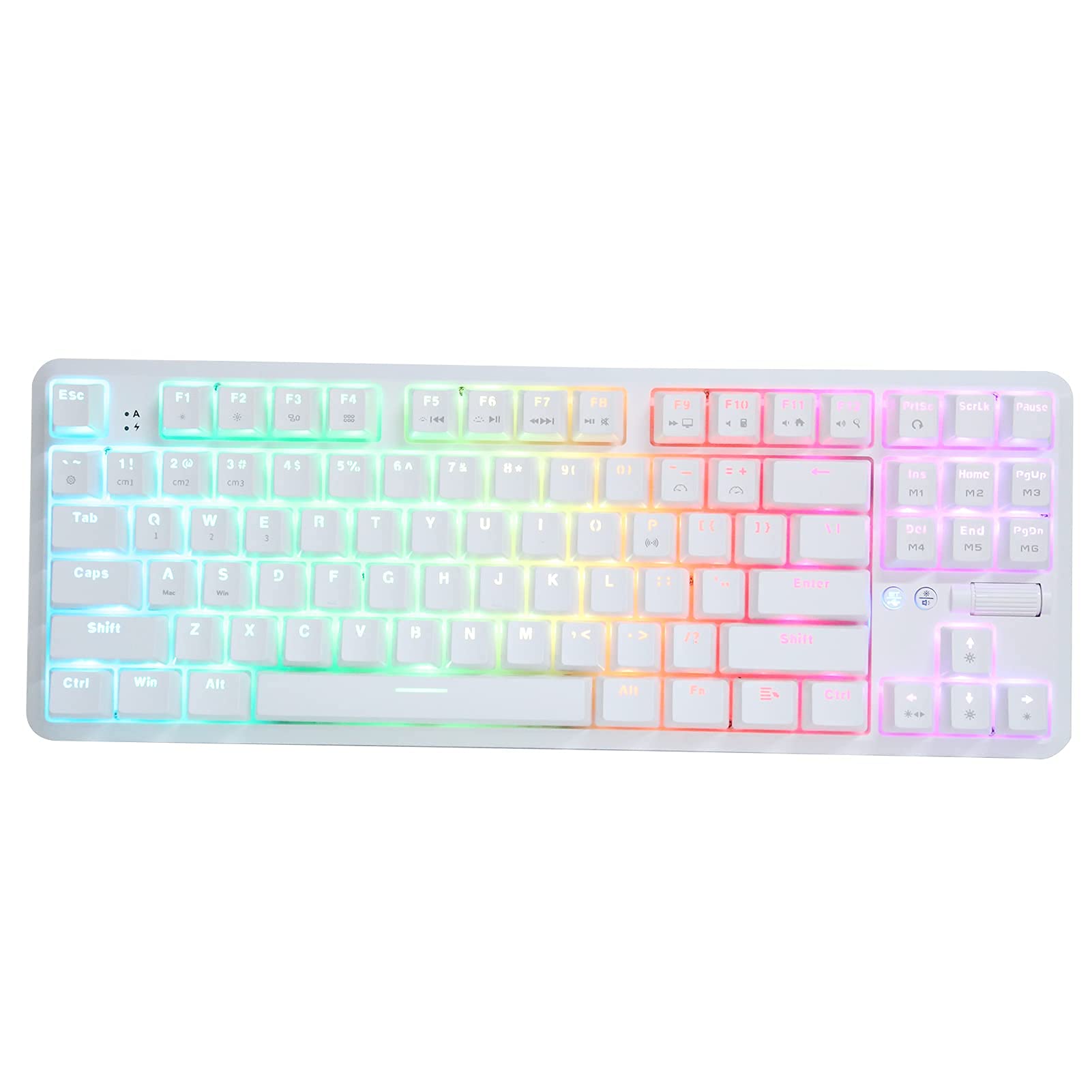 RGB Mechanical Gaming Keyboard, K870T 87 Keys Mechanical Keyboard Backlit Keys with Bluetooth 1.6m Wired Dual Mode and 18 Colorful RGB Light (White)