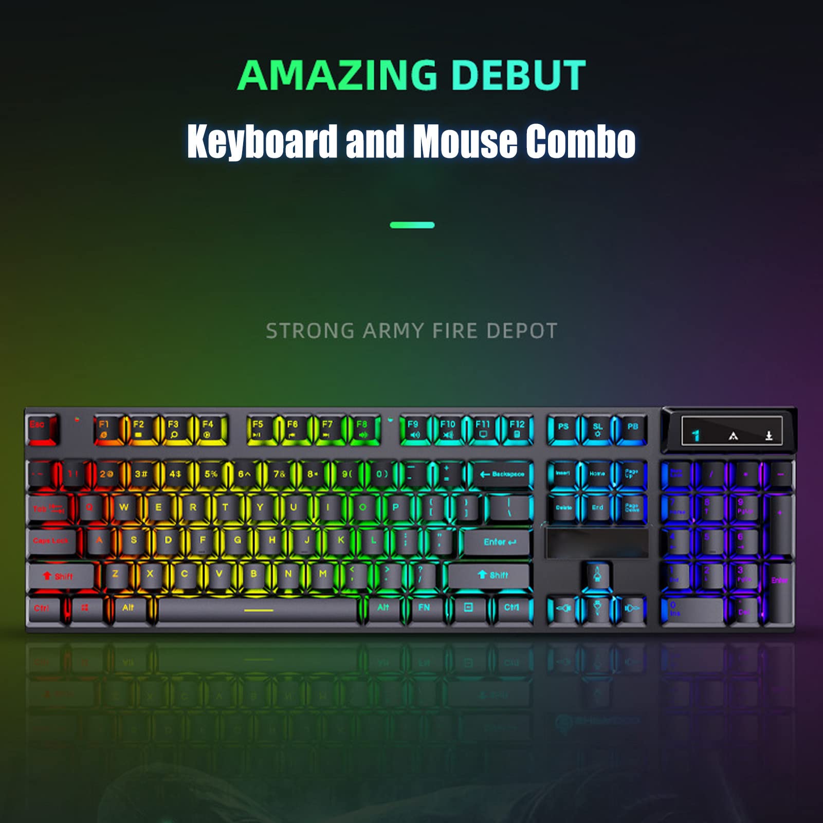 Waterproof Keyboard and Mouse Combo, RGB LED Backlit Gaming 104 Keys Wired USB Keyboards with Ergonomic Gaming Mouse for PC Gamer Computer Desktop(Black)