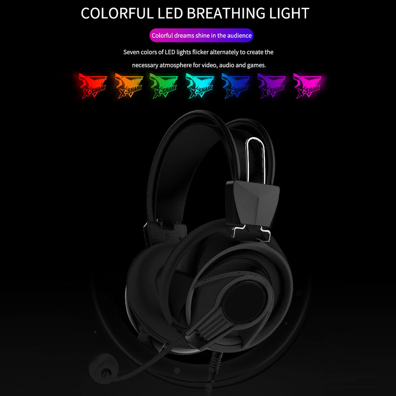 Wired Gaming Headset for PC, Multicolor RGB Headphone with Omnidirectional Microphone for PCPS4