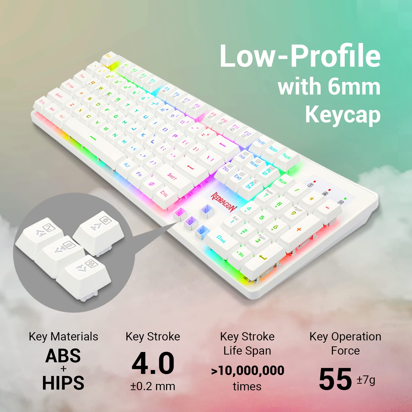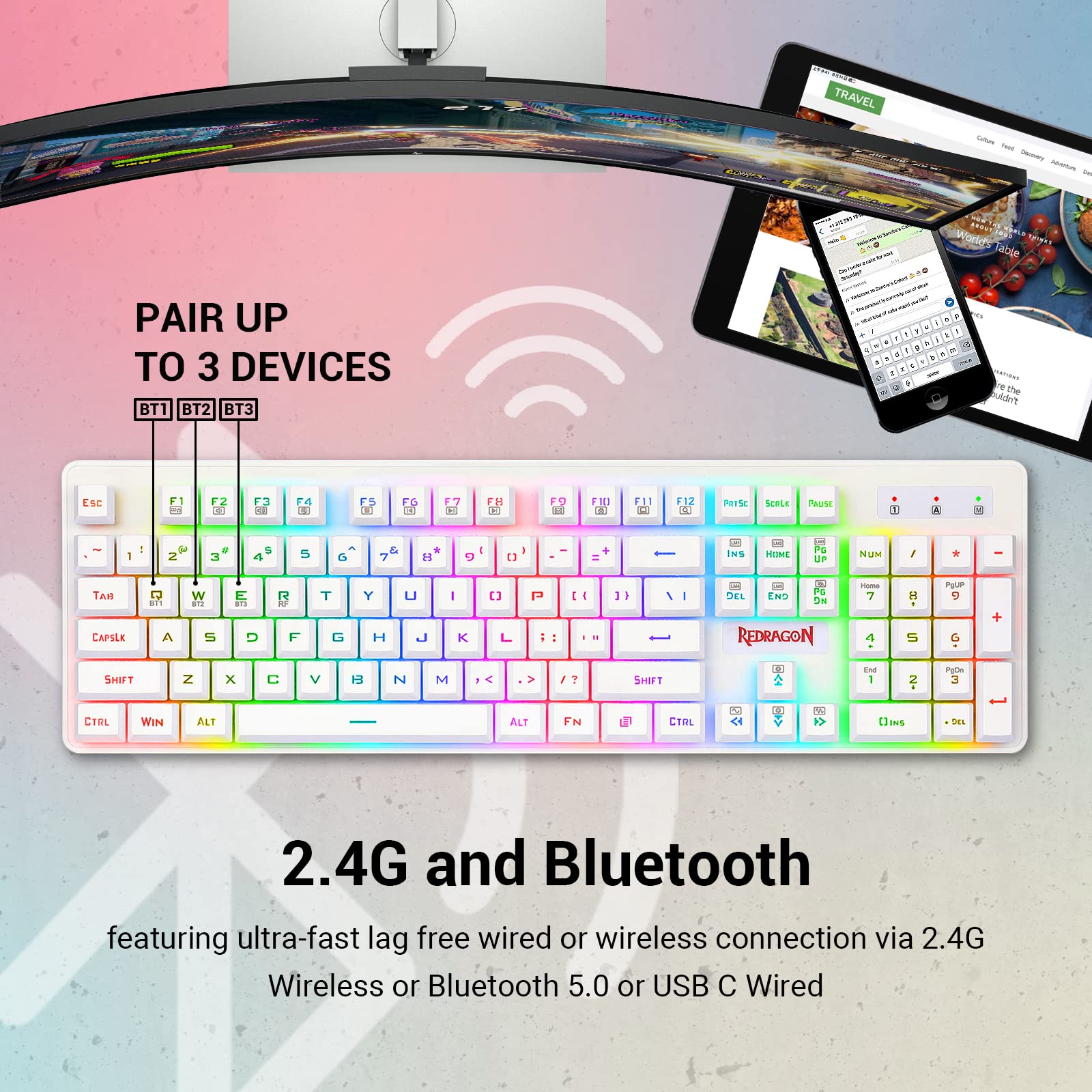 Redragon K509 Pro Wireless Gaming Keyboard, 2.4G and Bluetooth Keyboard, RGB Backlit with 104 Low Profile Keys for Windows PC (White)