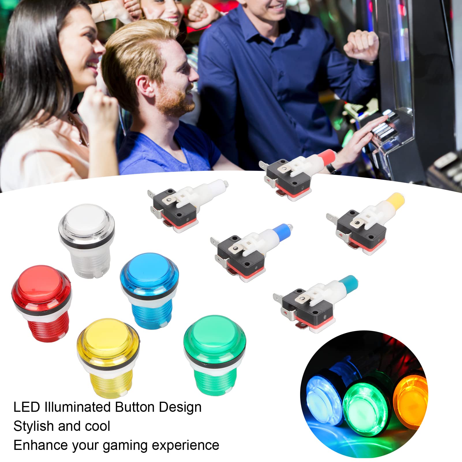 Arcade Game Push Button, LED Illuminated Push Button Switch with 5 Color and LED Light, 32mm Round Button with Micro Switch for Arcade Machine Games DIY Kit Parts Jamma Mame Raspi