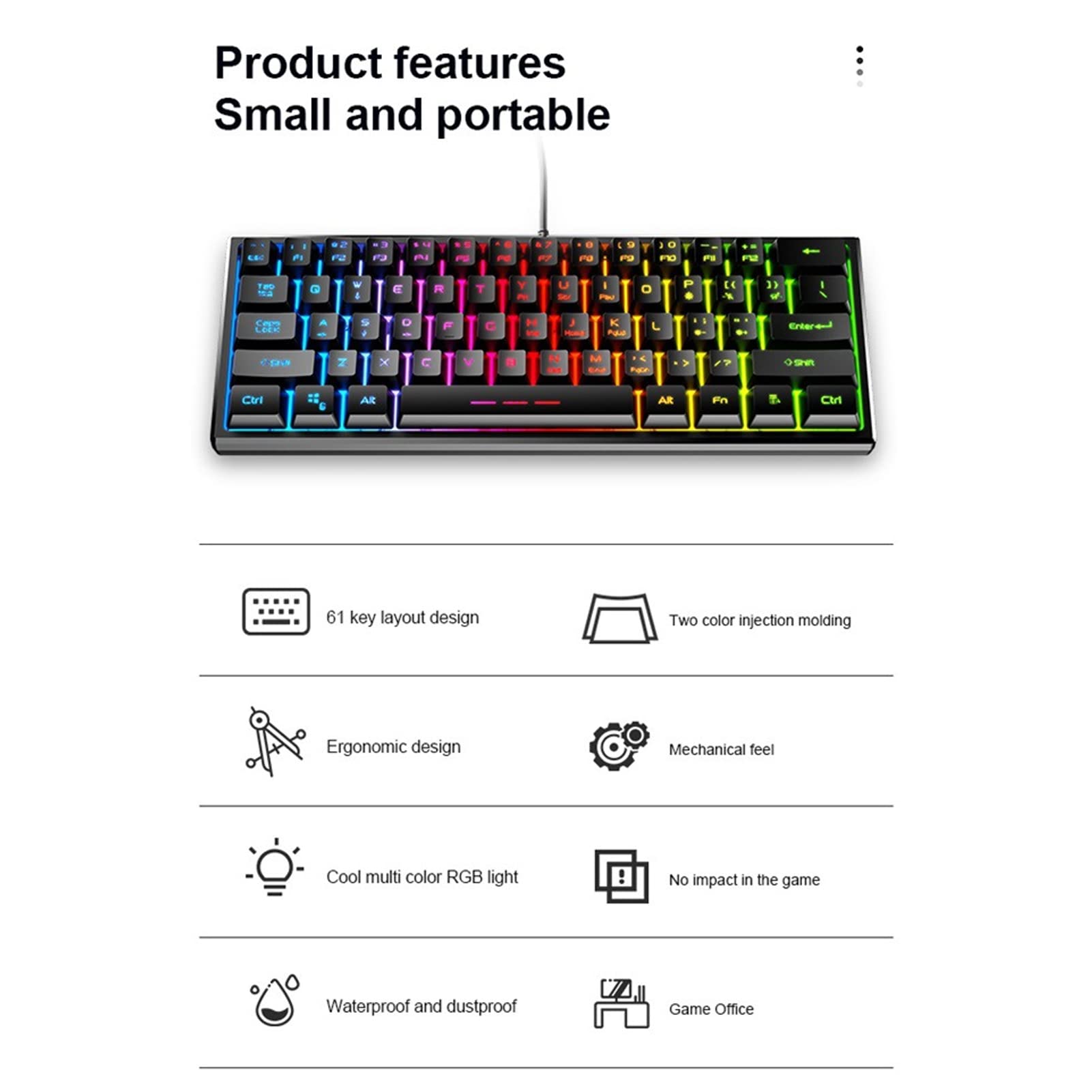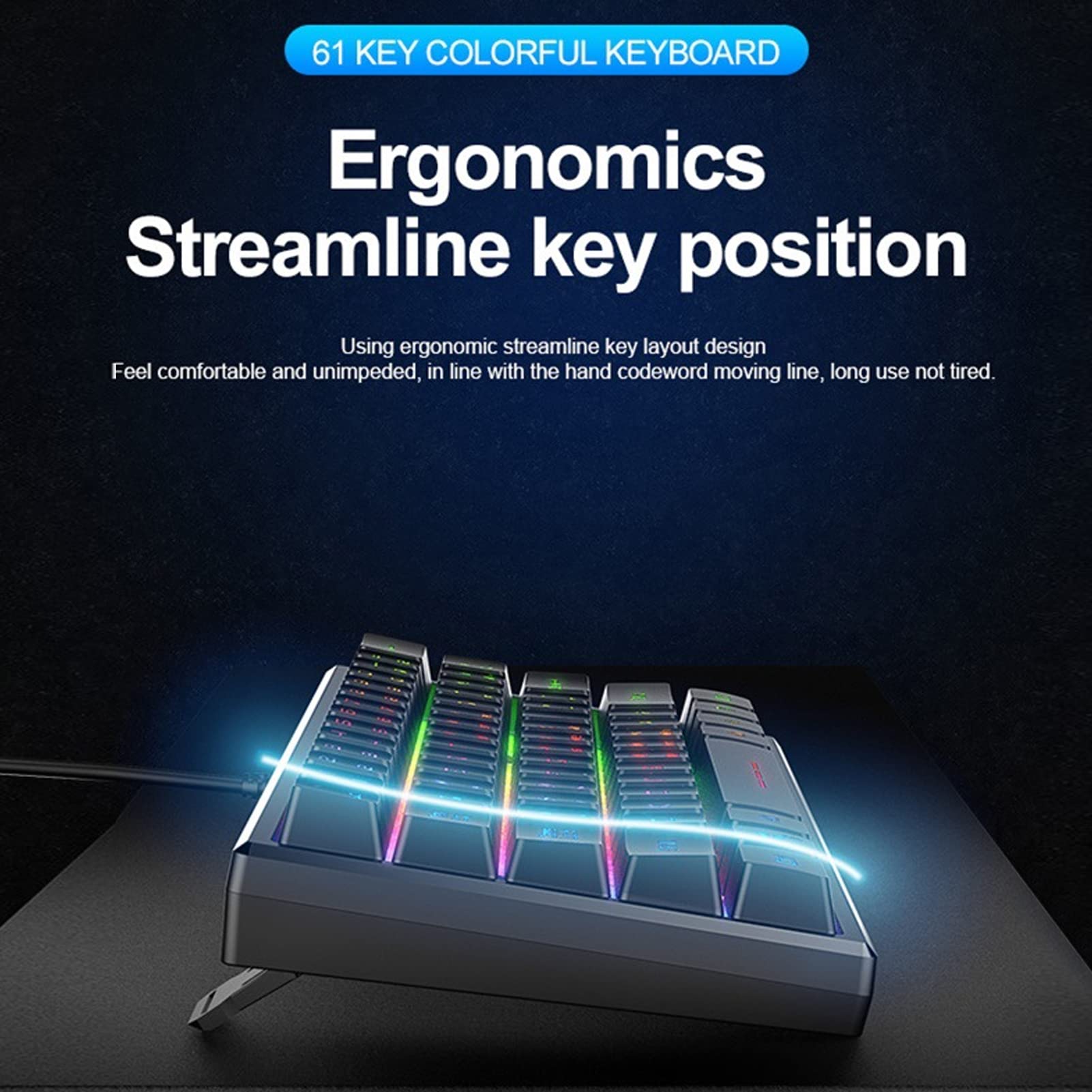 Acogedor Backlit Mechanical Gaming Keyboard,Mini Compact Wired 61 Keys Keyboard with Ergonomic Design,USB Portable PC Keyboard for Home Office Laptop Work Gaming
