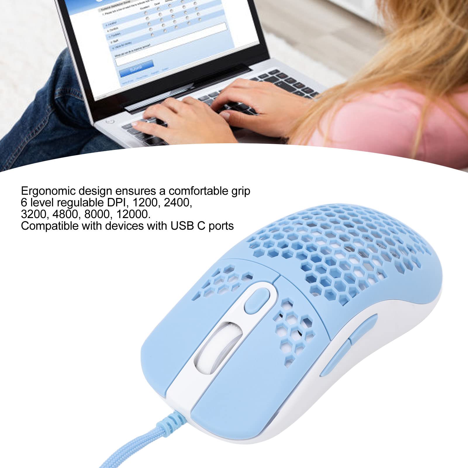 Luqeeg Pro Wired Gaming Mouse - 12000 DPI, Honeycomb Shell, RGB Backlight, 6 Lighting Effect Modes, Ultra Lightweight, USB Type C Ergonomic Gaming Mouse(Blue)