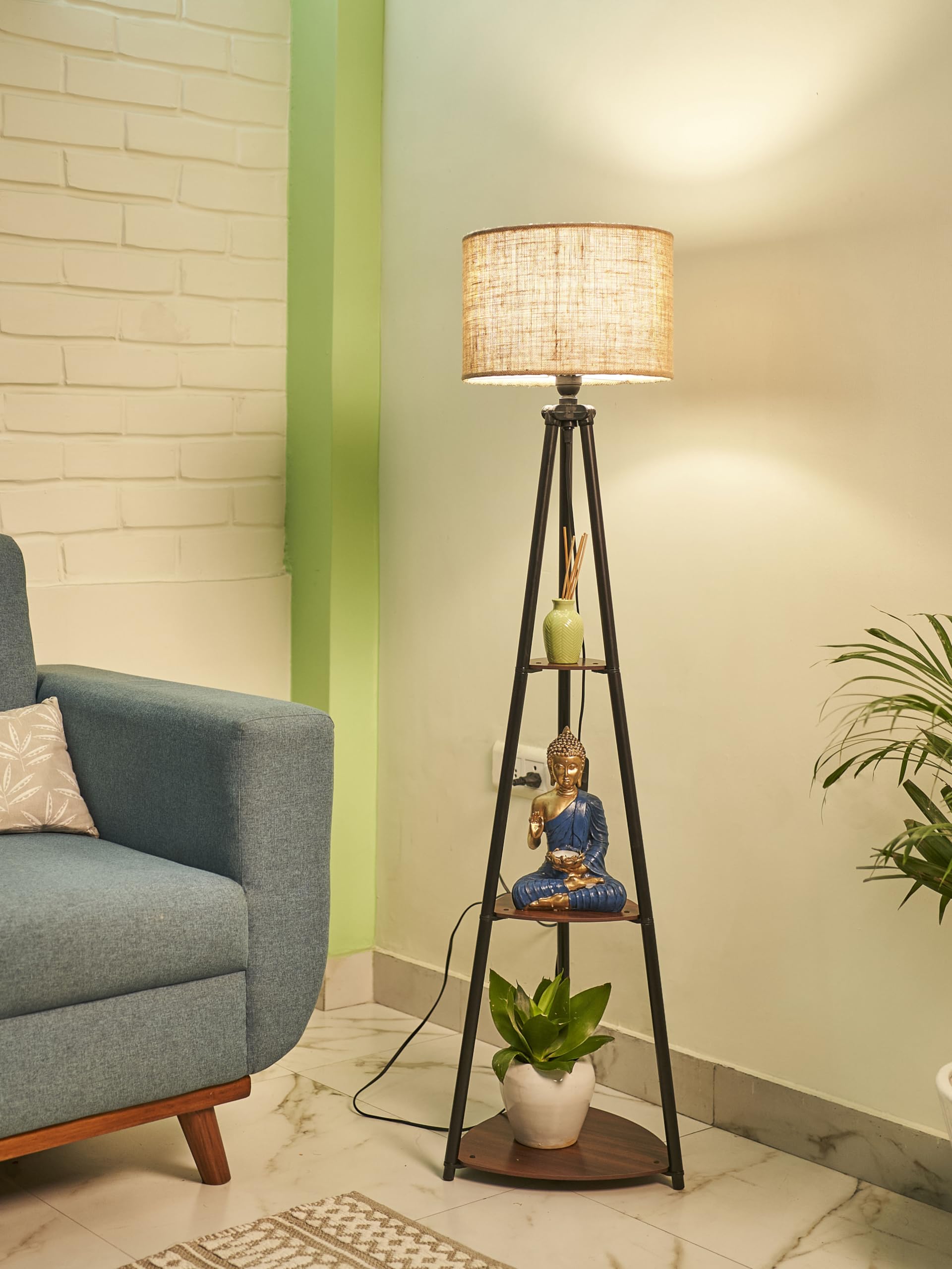 This lamp is designed and created by an Indian Architect considering product functionality and utility. You just need to add some Pants, Books, Creative Articles, or any of your creative ideas to makeover your interior with its designer finish and golden light. The minimalist design with a black finish gives a more fresh and pleasant feel to your space. This natural black satin finish merges easily with all types of furniture and wall colors it also adds contrast and focal point to your living room.