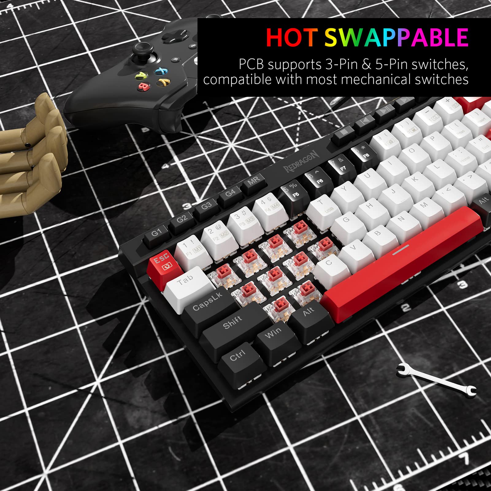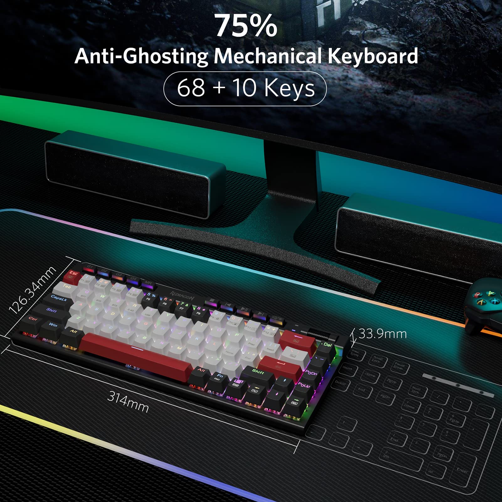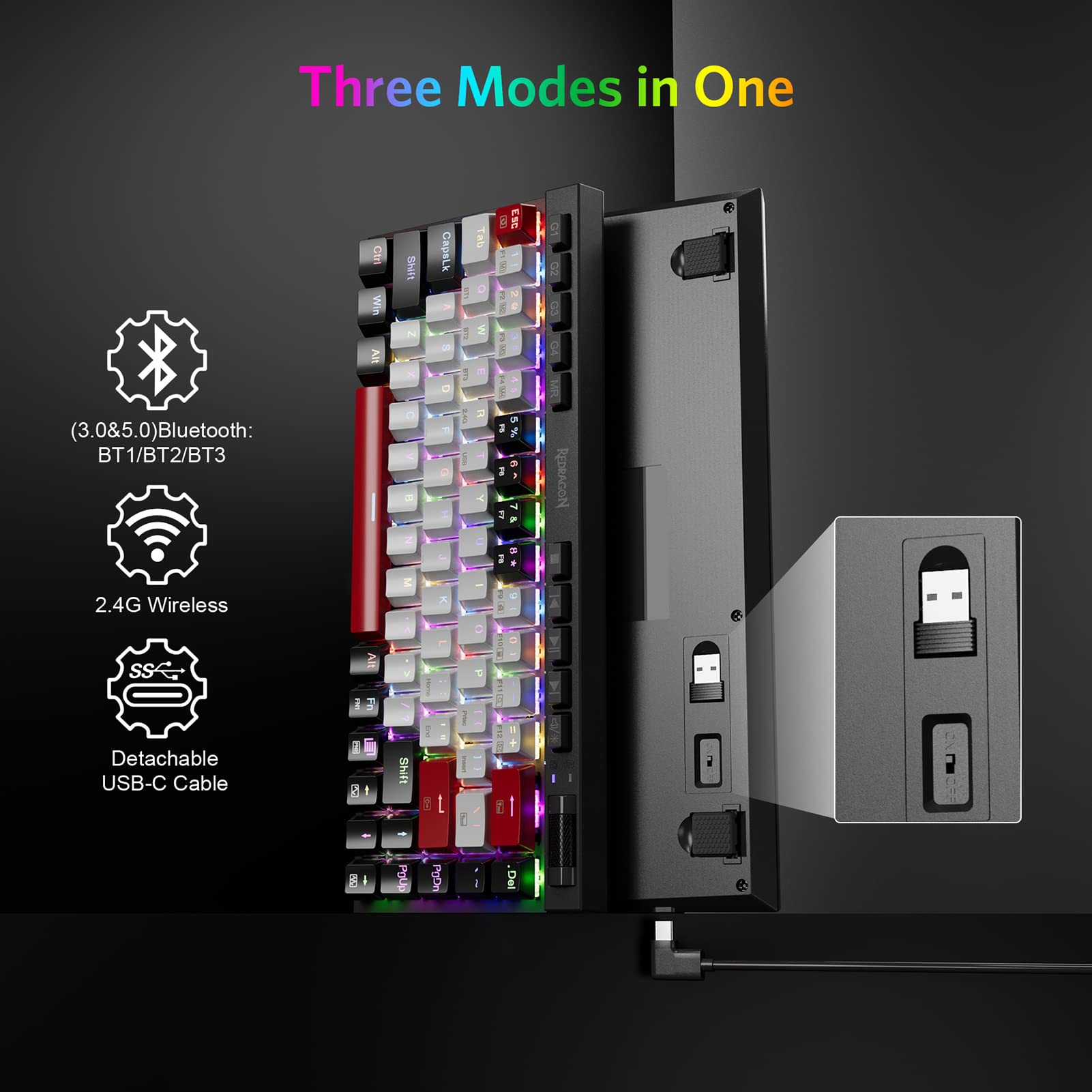 Redragon K635 Hot Swappable Mechanical Keyboard Customized RGB Backlit with Volume Control, Bluetooth/2.4G-Wireless/USB-C Compact Gaming Keyboard with Red Switches(68+10Keys)