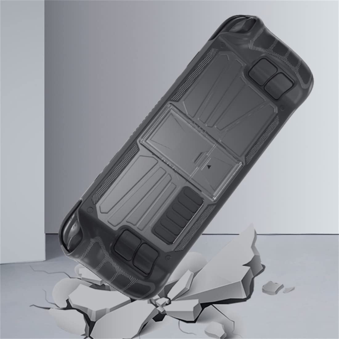 For Steam Deck Game Console TPU+PC Protective Shell Bracket Peripheral Accessories Tempered Film Sticker (Black)