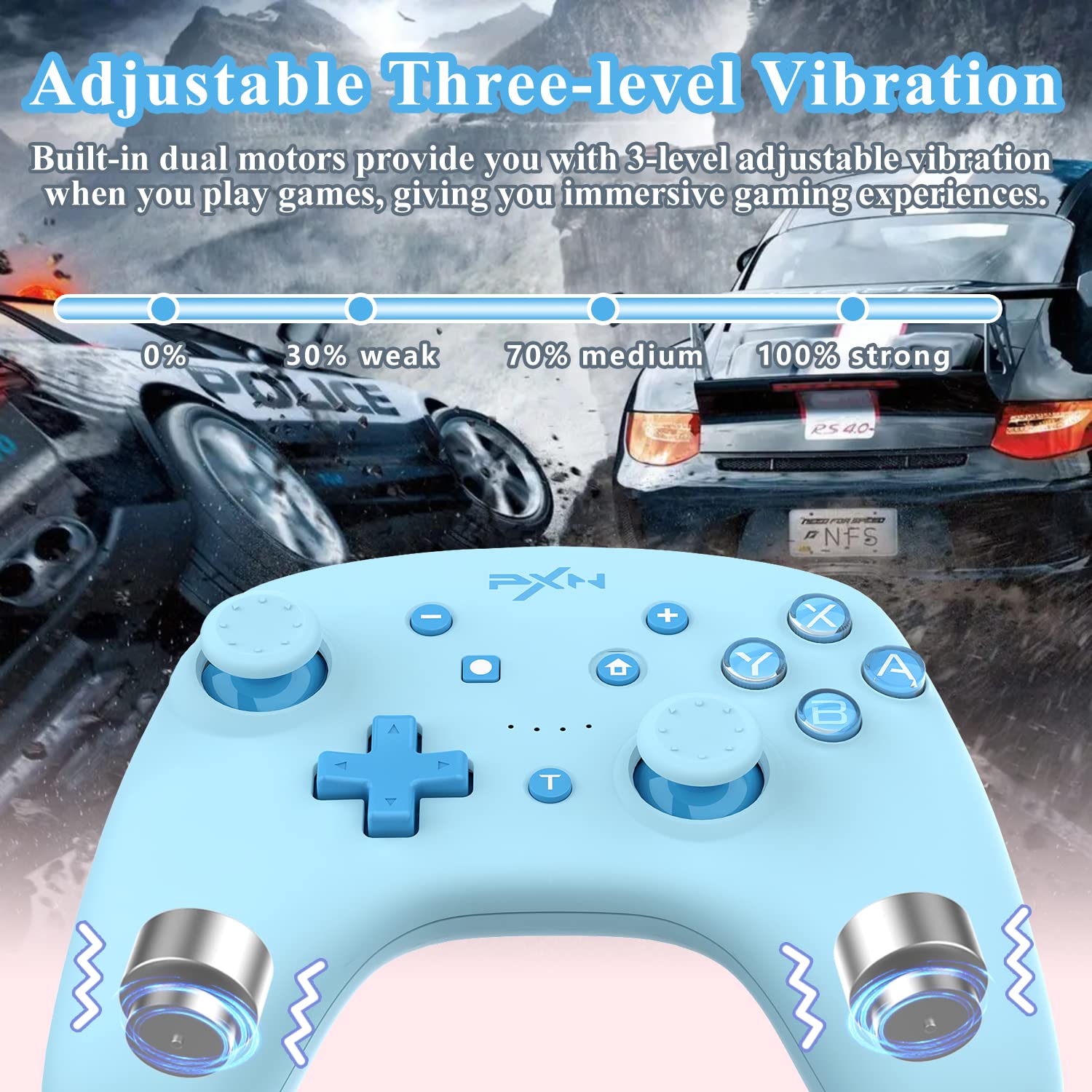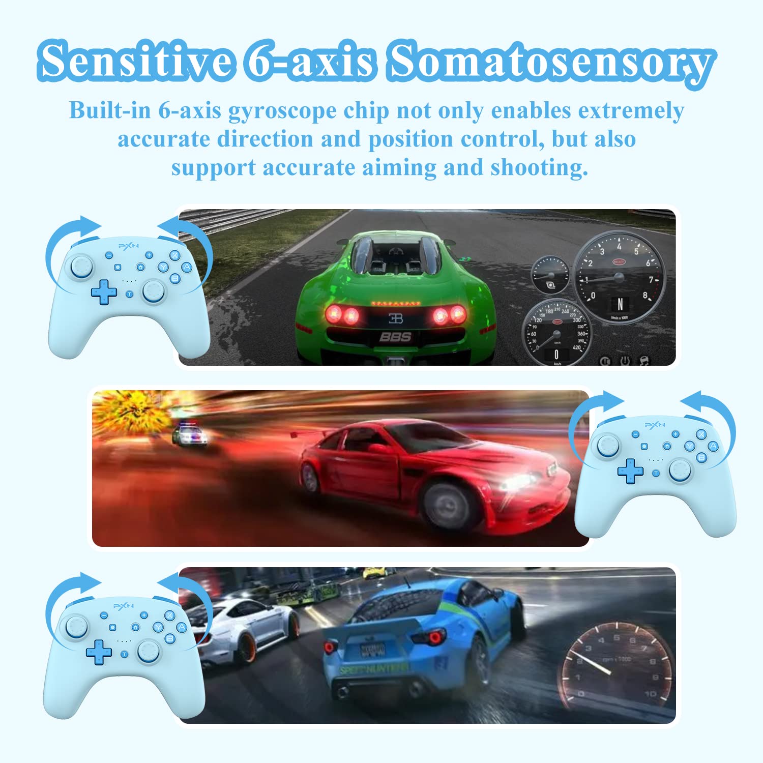 PXN 9607X Wireless Switch Pro Controller for Switch Controller/Switch Lite/Switch OLED, Switch Pro Controller with Wake-up, Turbo, NFC, Motion, Vibration (Cyan)