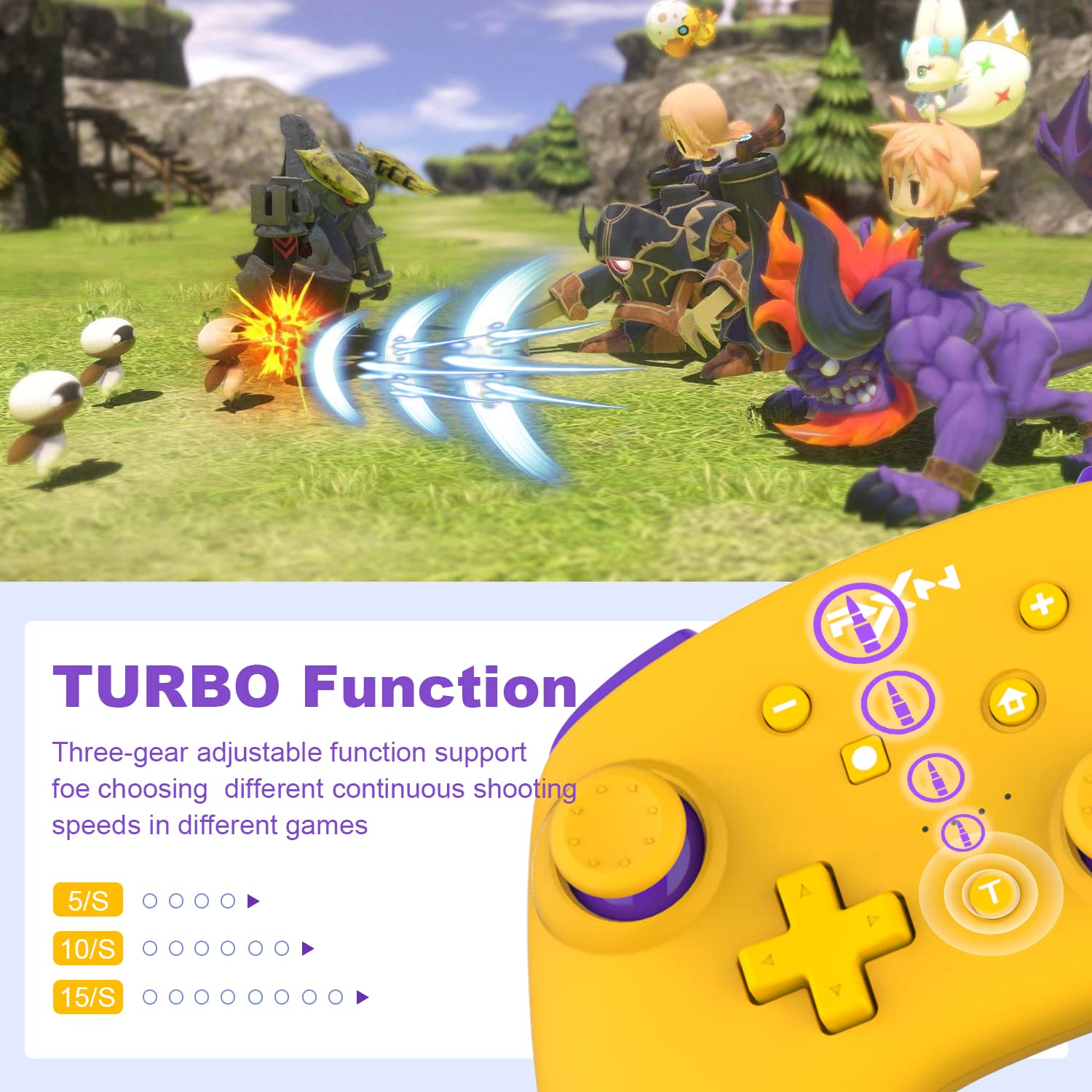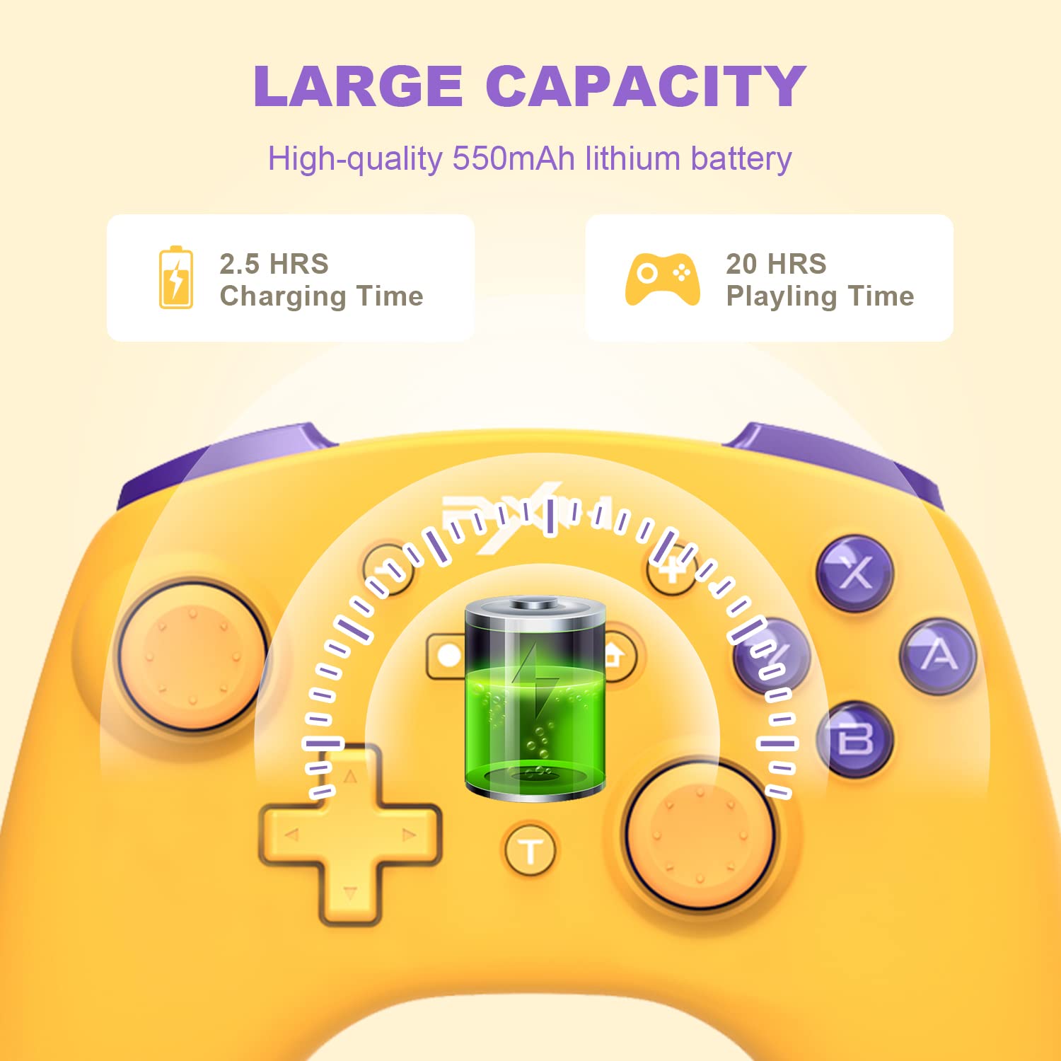 PXN 9607X Wireless Switch Pro Controller, Dual Shock Gamepad Joystick Support NFC, Turbo, Wake-up, Gyro Axis, Vibration for Switch/Lite/OLED & PC & IOS (Yellow)