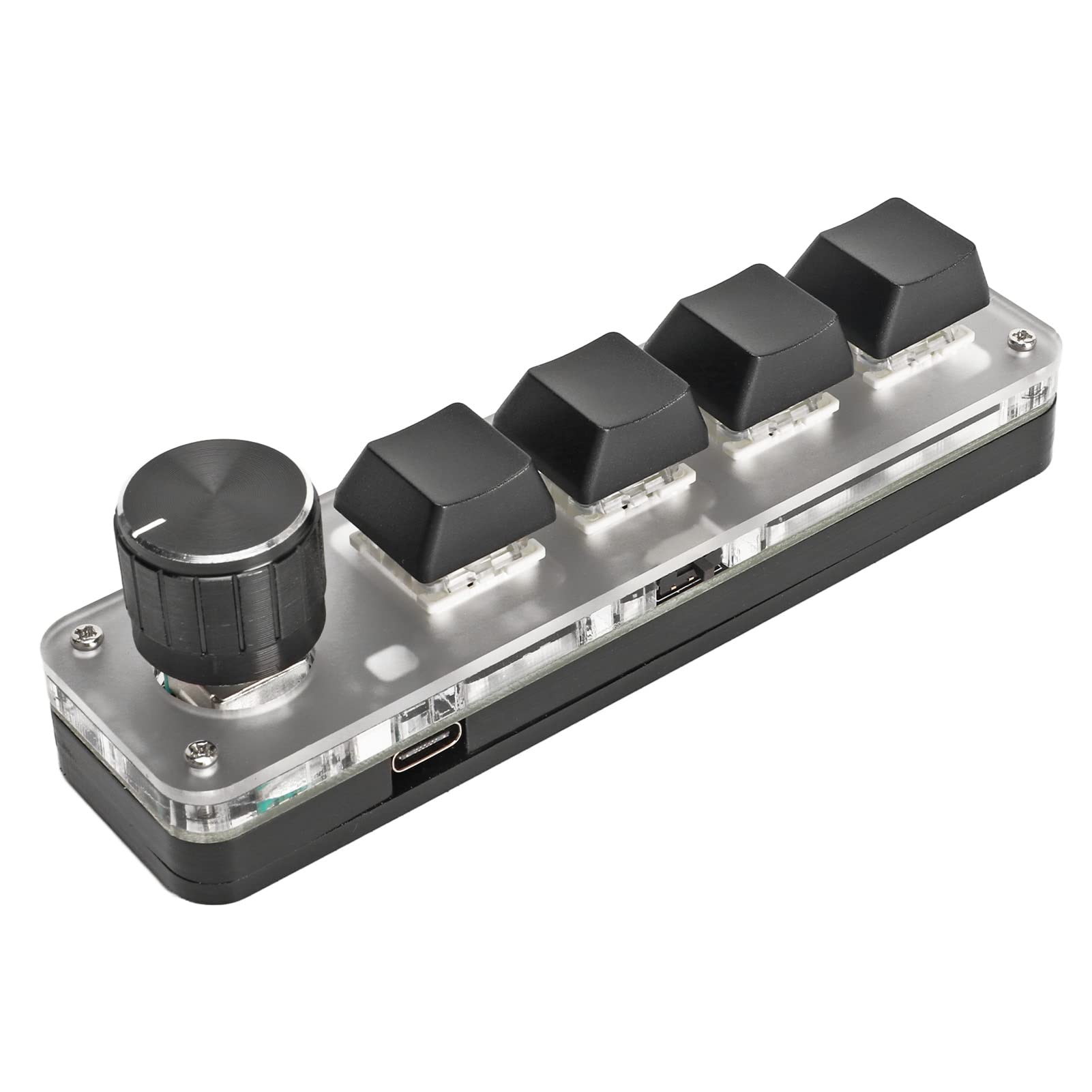 Zunate Mini 4 Key Keypad, Programming Macro Mechanical Gaming Keyboard with Knob, Backlit Wired BT Keyboard for Gaming Office Media