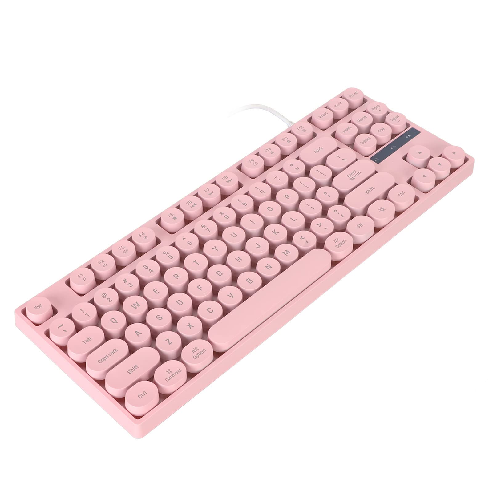 Mechanical Gaming Keyboard, USB Wired Punk Typewriter Style Light Up Keyboard, 87 Keys Round Keycaps Keyboard with Colorful Backlit, for Windows, Mac ()