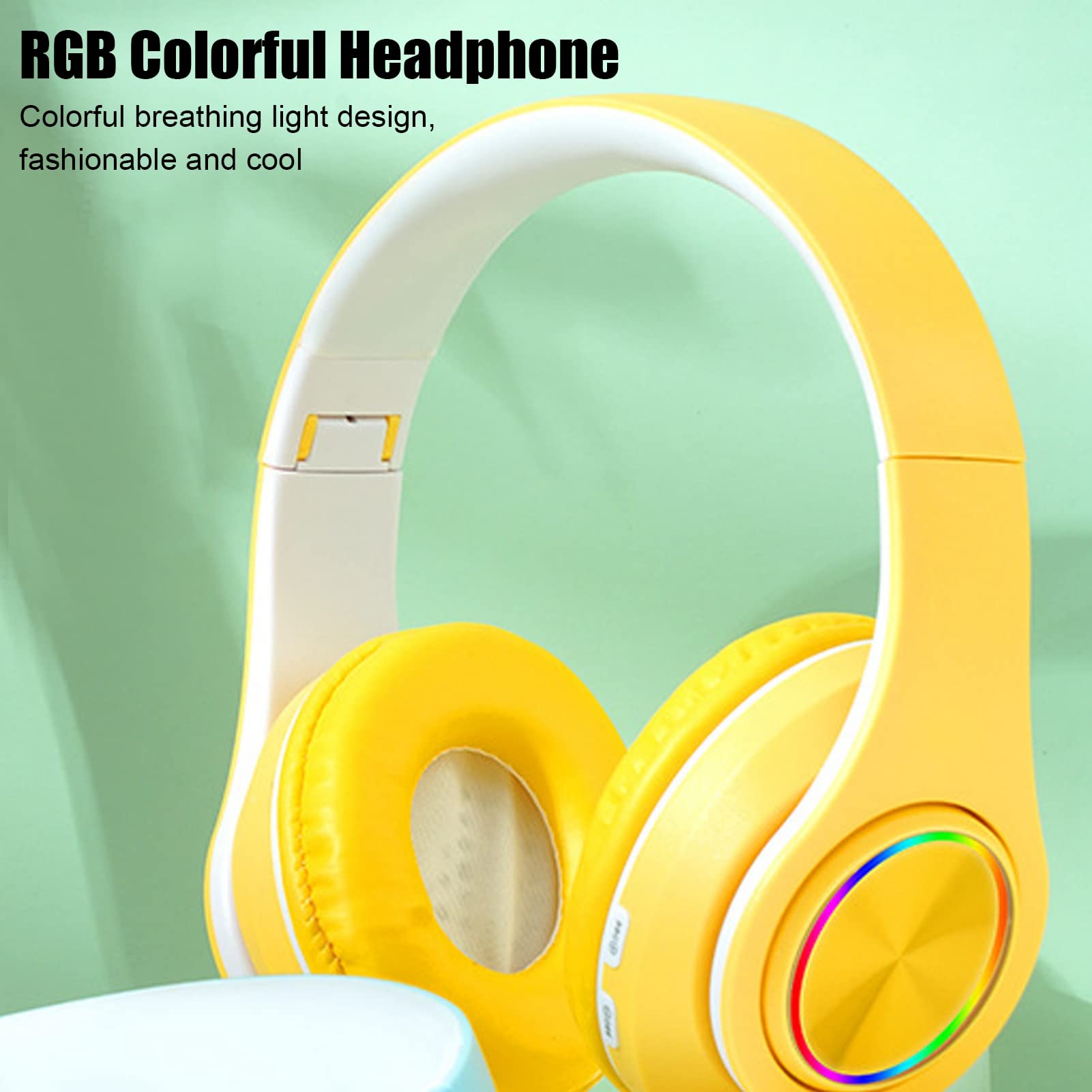 ciciglow Cat Ear PC Gaming Headset, Noise Reduction Wireless Gaming Headphone Glowing LED Light Deep Bass Foldable Headband Headphones with Soft Earmuffs (Yellow)