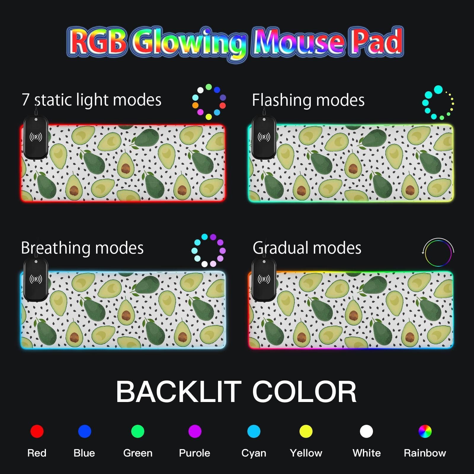 Avocado Fruits Wireless Charging Mouse Pad for Mobile Phone Extra Large Gaming Mousepad with 13 Lighting Modes Keyboard Mat for Gaming MacBook PC Laptop Desk Office Home