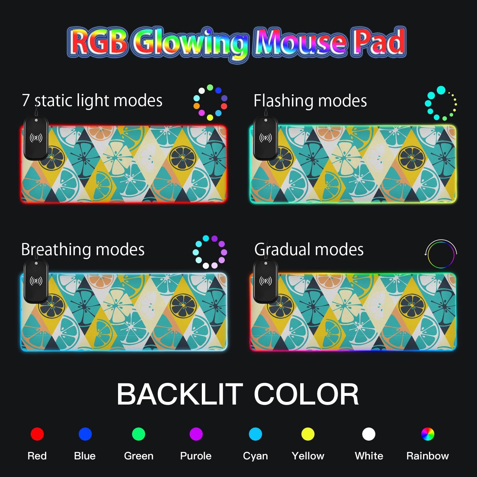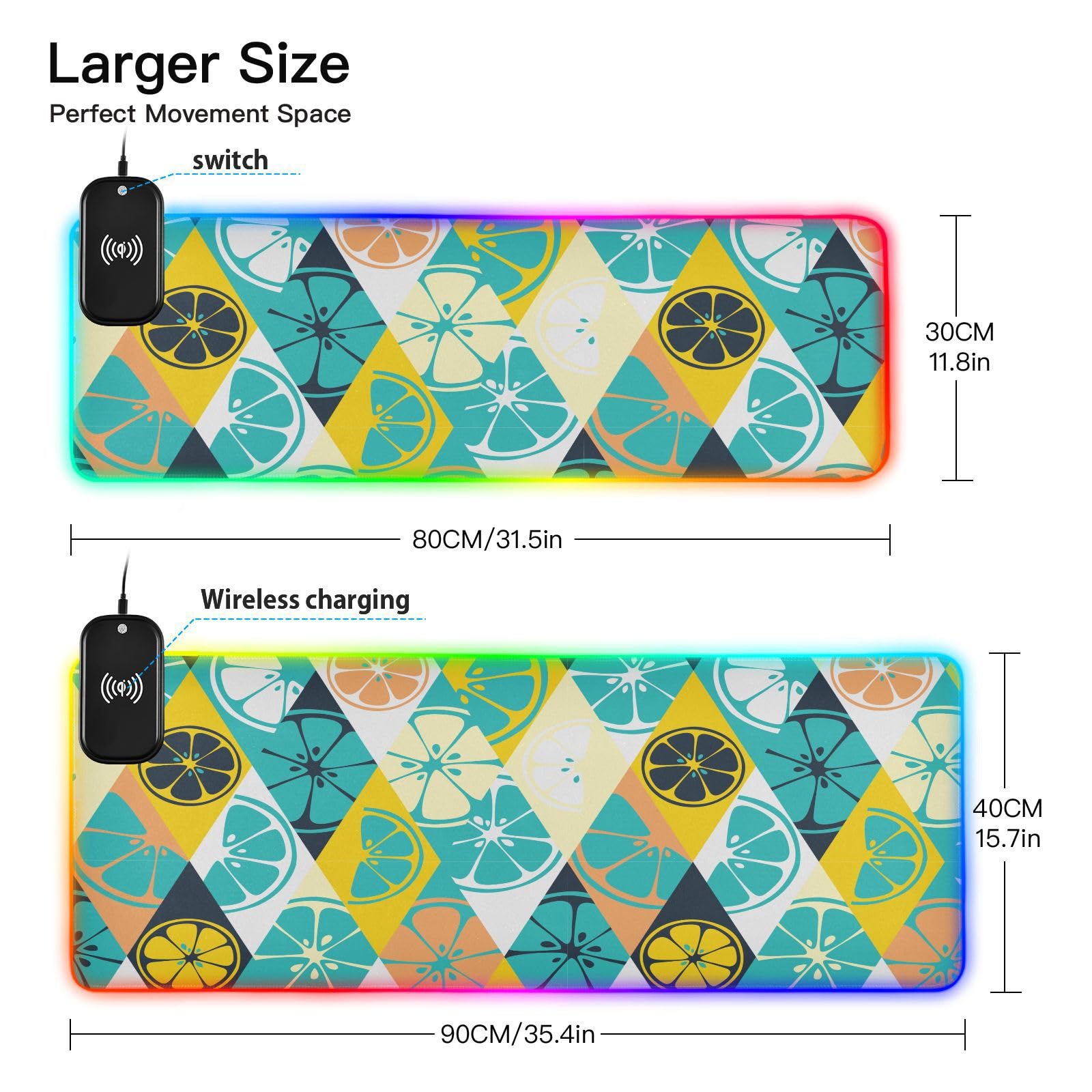 Citrus Lime Lemon Wireless Charging Mouse Pad for Mobile Phone Extra Large Gaming Mousepad with 13 Lighting Modes Extended Desk Mat for Gaming MacBook PC Laptop Desk Home Office