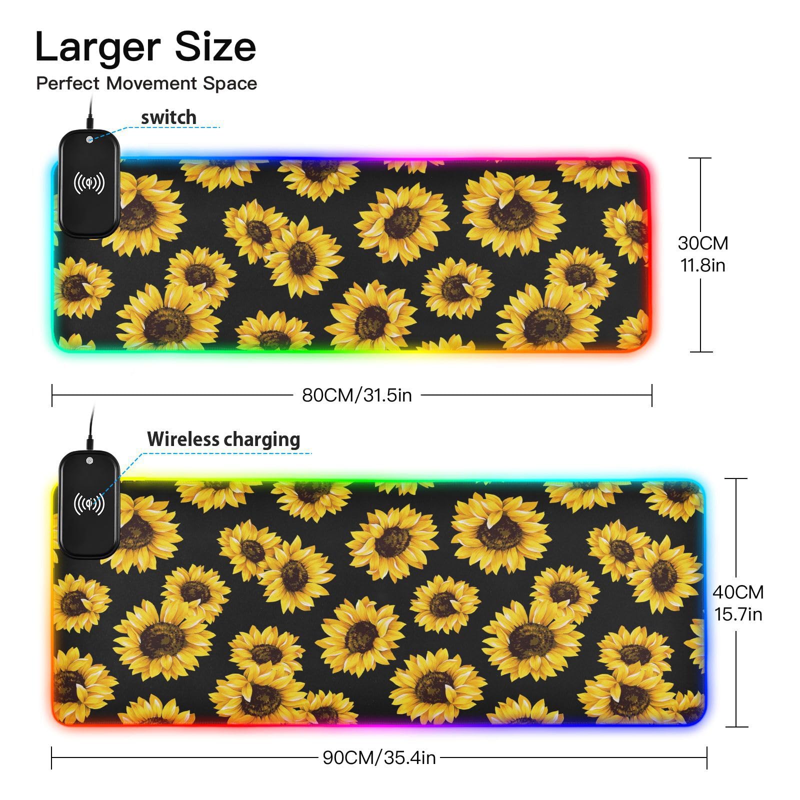 Beautiful Sunflowers in Black Background Wireless Charging Mouse Pad for Mobile Phone Extra Large Gaming Mousepad with 13 Lighting Modes Computer Mat for Office Home Gaming MacBook PC Laptop Desk