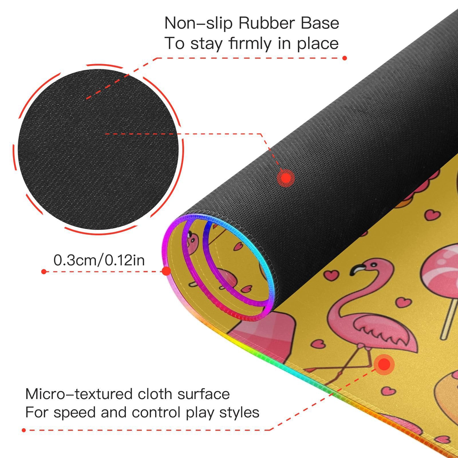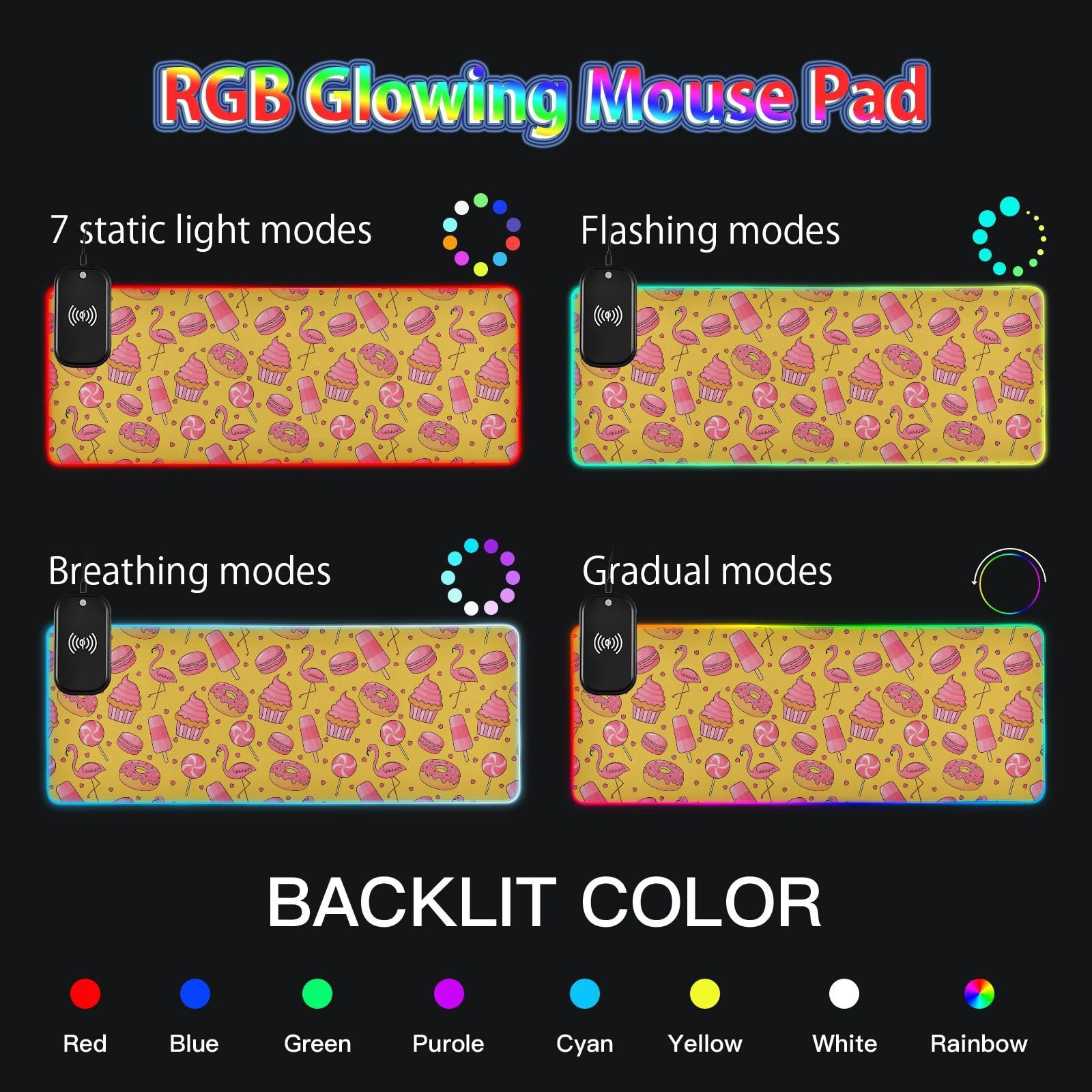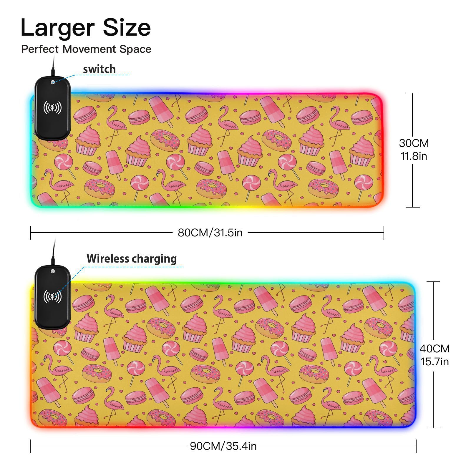 Cute Candy Flamingo Wireless Charging Mouse Pad for Mobile Phone Extra Large Gaming Mousepad with 13 Lighting Modes Extended Desk Mat for Office Home Gaming MacBook PC Laptop Desk