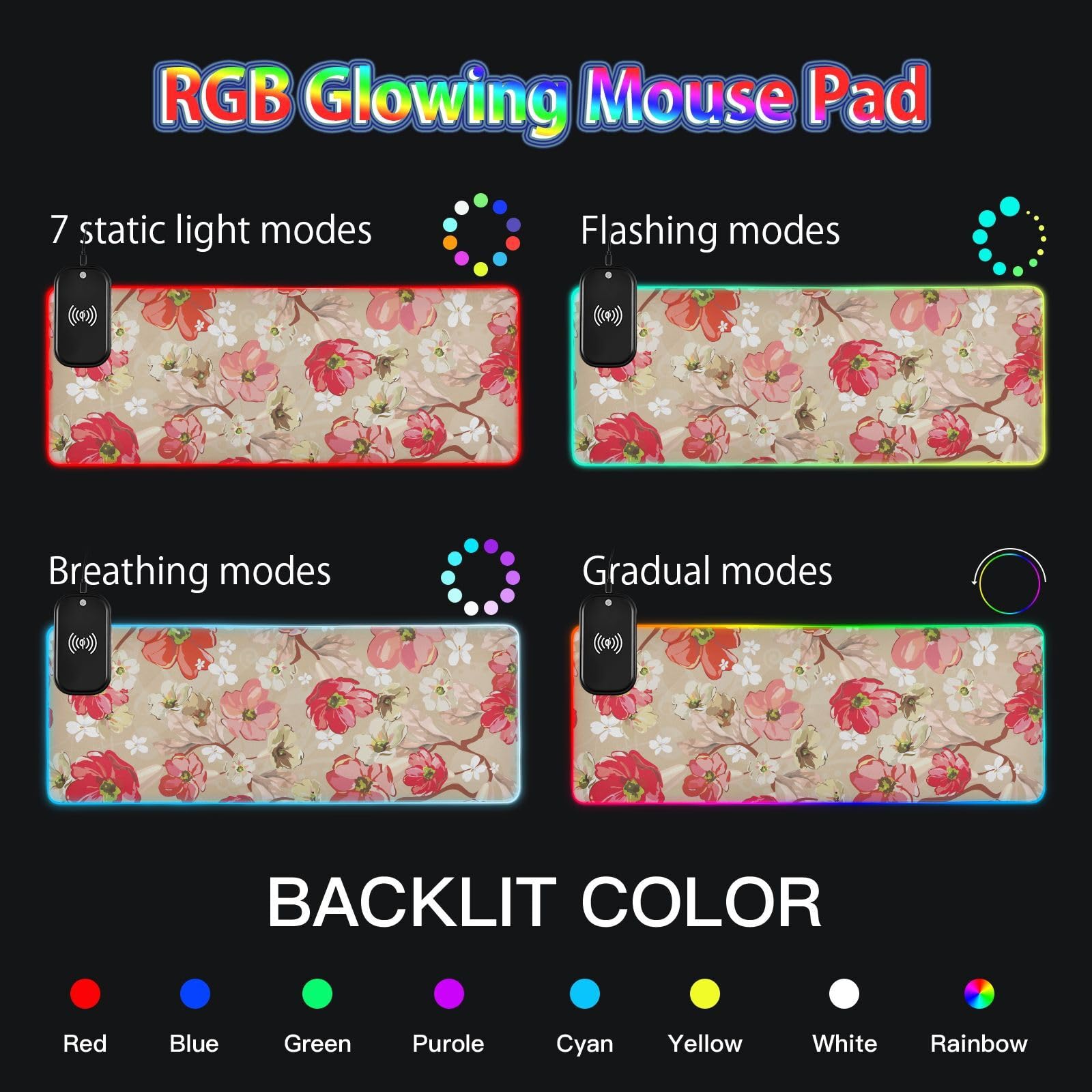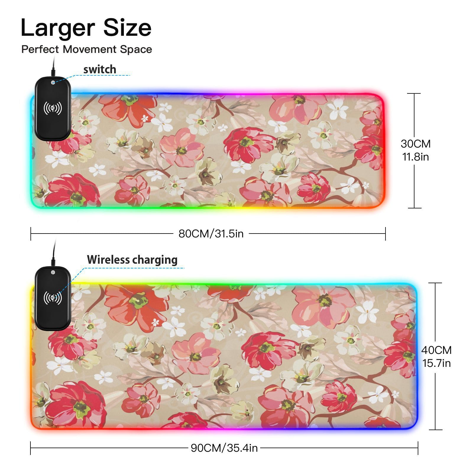 Flower Florals Wireless Charging Mouse Pad for Mobile Phone Extra Large Gaming Mousepad with 13 Lighting Modes Mouse Mat for MacBook PC Laptop Desk Office Home Gaming