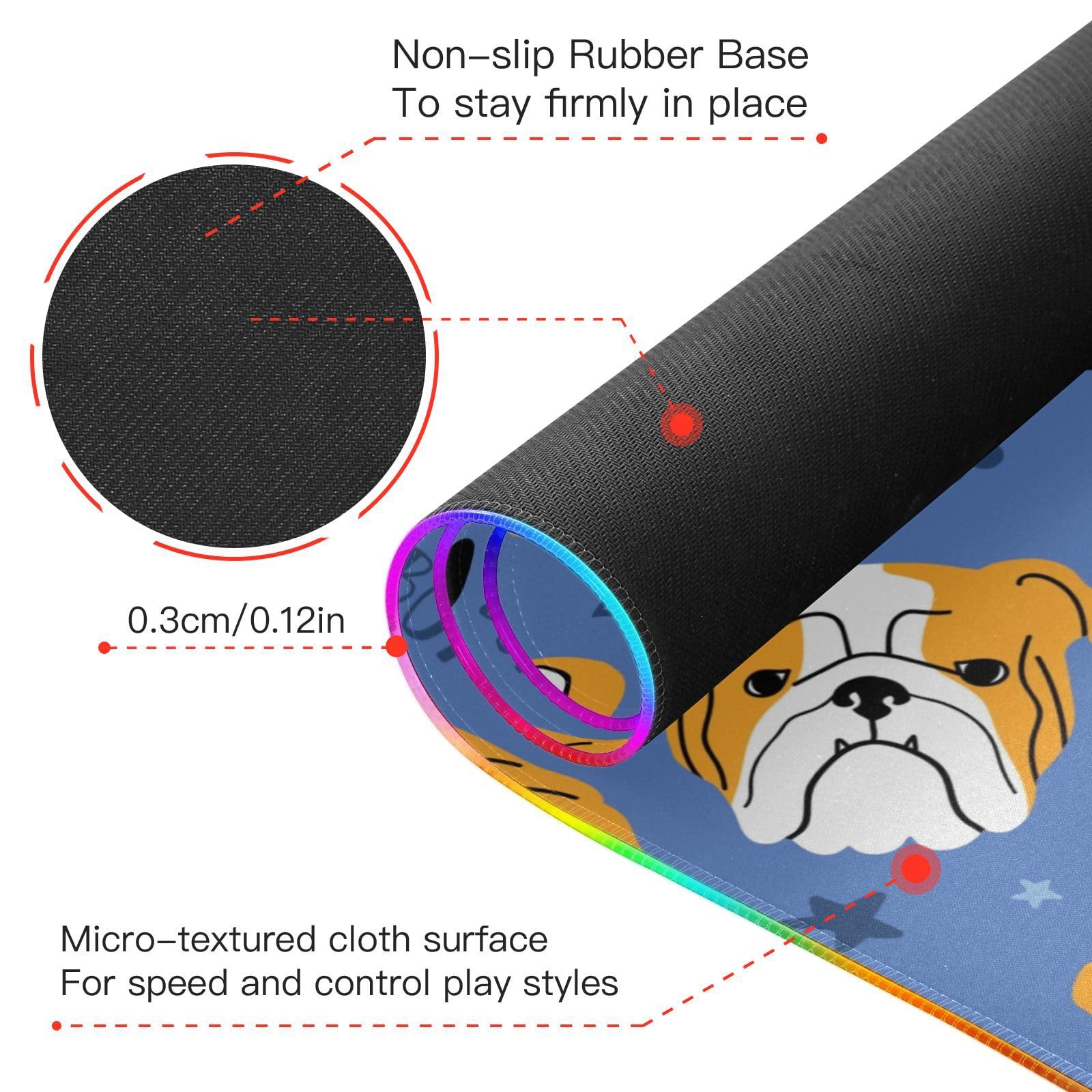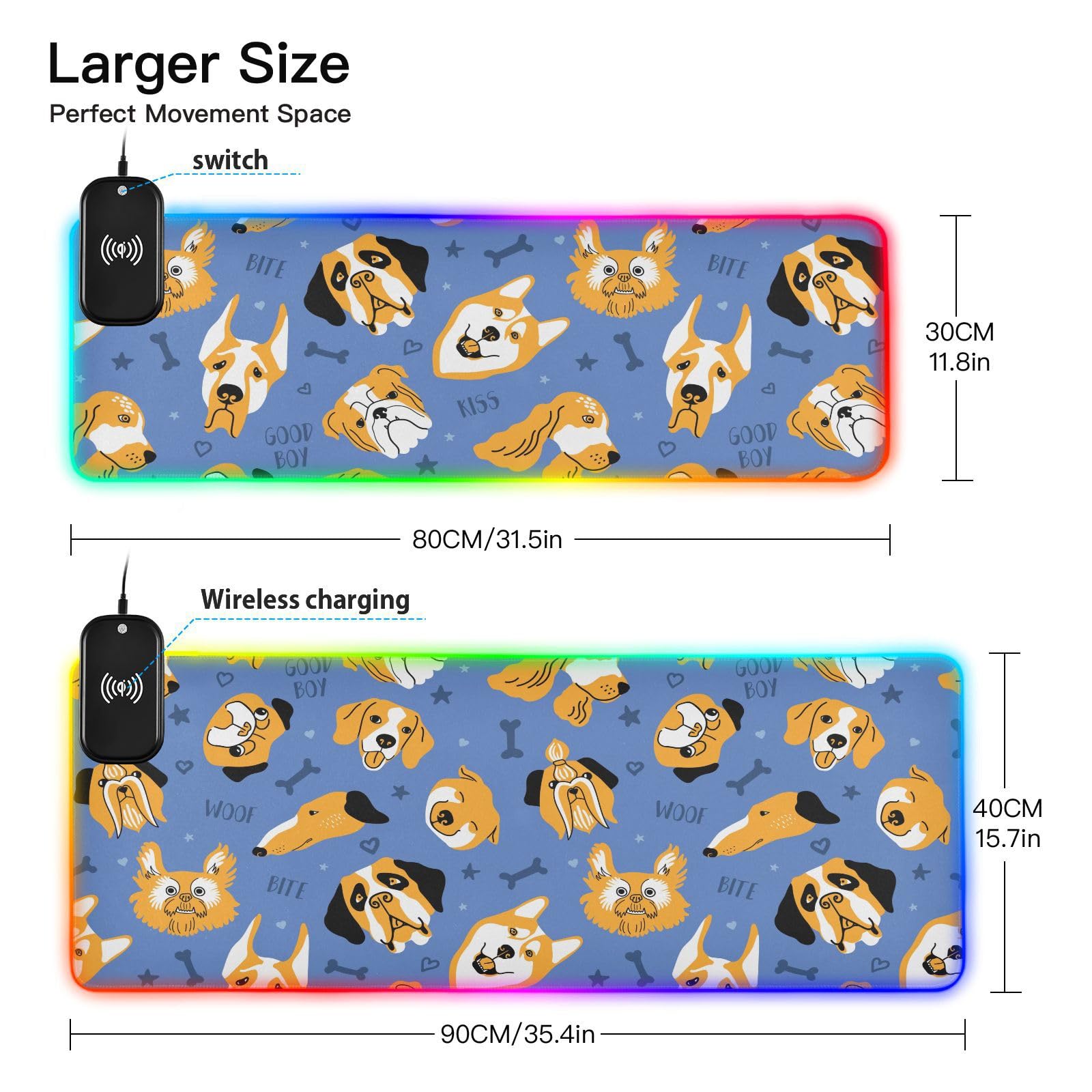 Dog Face-01 Wireless Charging Mouse Pad for Mobile Phone Extra Large Gaming Mousepad with 13 Lighting Modes Mouse Mat for Office Home Gaming MacBook PC Laptop Desk