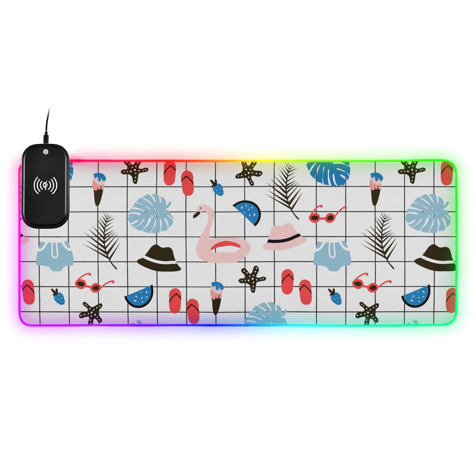 Flamingo (35) Wireless Charging Mouse Pad for Mobile Phone Extra Large Gaming Mousepad with 13 Lighting Modes Extended Desk Mat for Office Home Gaming MacBook PC Laptop Desk
