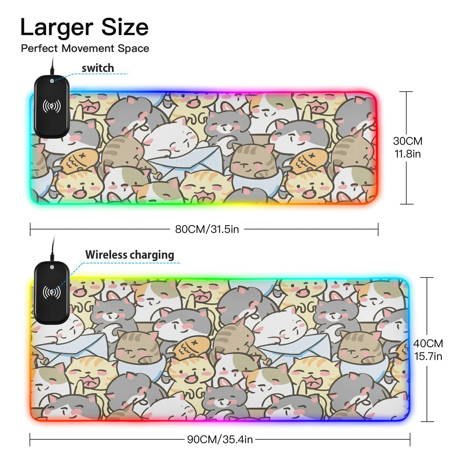 Cat Wireless Charging Mouse Pad for Mobile Phone Extra Large Gaming Mousepad with 13 Lighting Modes Computer Mat for Gaming MacBook PC Laptop Desk Office Home